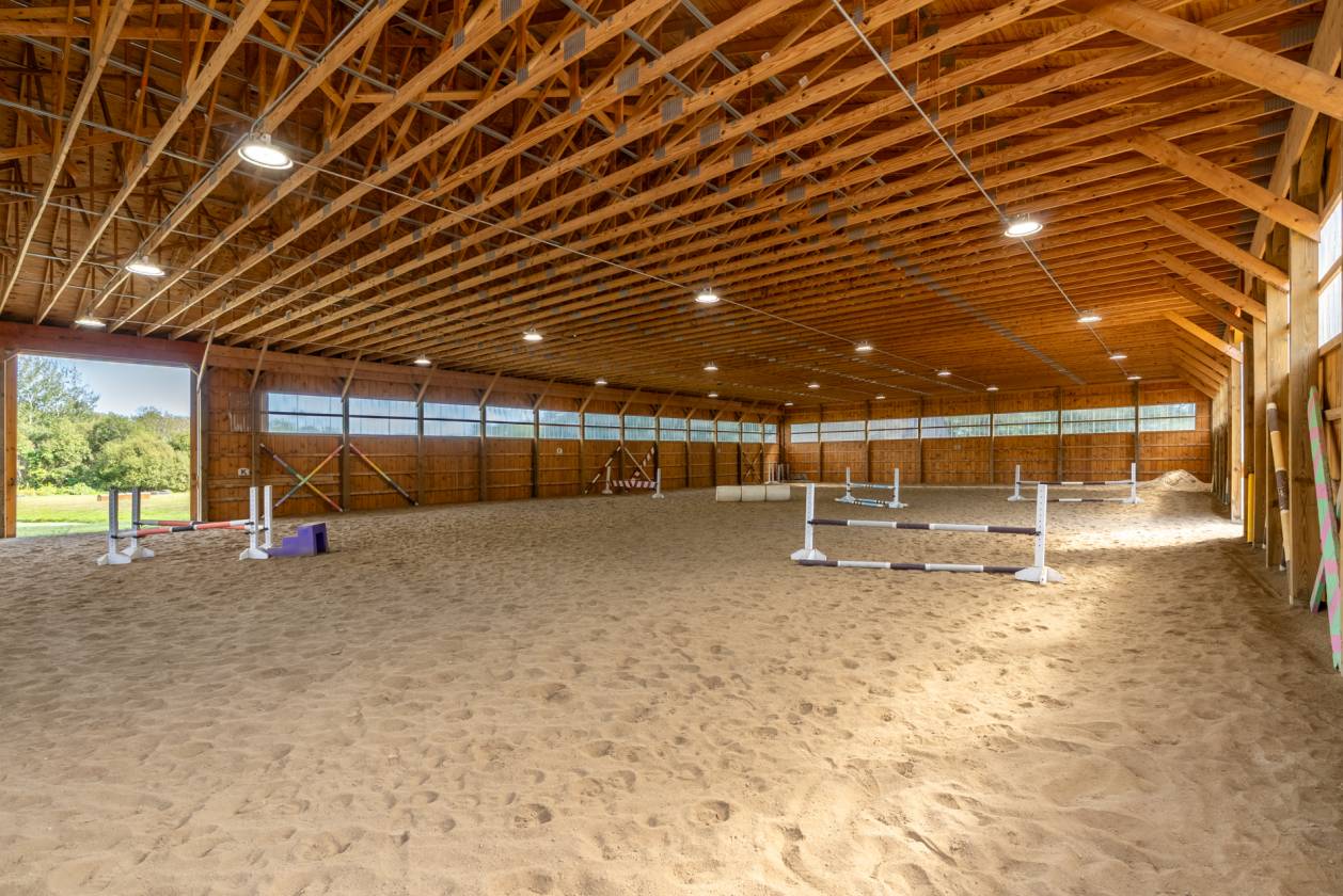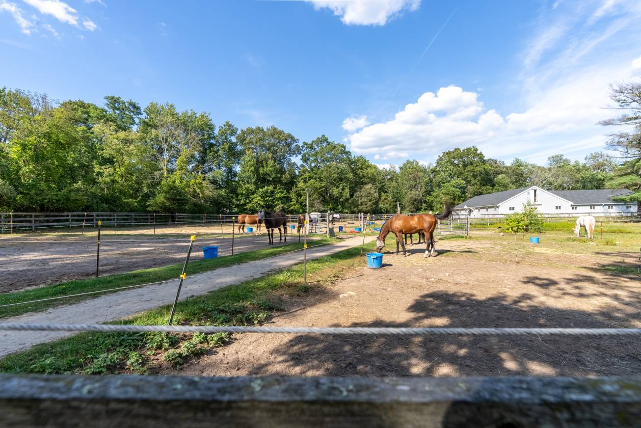 Peaceful private horse facility in a country setting, convenient to stores, restaurants & highways. The Equestrian features on this property are awesome & efficient, including the following: a large Indoor Riding Arena built 2019, Outdoor Arena 100x150, Grass Dressage area, Jump Field, Training Track 1/2 mile, 2 Barns with a total of 26 horse stall capacity-tack room & loft storage for hay in each barn, 14 Paddocks & pond. The property also offers a single family ranch style home to relax in at the end of the day, that has GREAT views of the horse farm! It features a fireplaced living room, kitchen with an inviting dining area, 3 bedrooms, 1.5 baths, Office, laundry rm, hardwood floors & ceiling fans in all the rooms. This easy to maintain home has vinyl siding, NEW-oil tank & hot water heater, roof 2018, generator transfer switch & an oversized detached 2+ garage. A brand new Septic System will be installed. Additional Features & Improvements-Regarding horse farm- Track 1/2 mile (1/3 owned by this property, 2/3 owned by neighbor), new electrical panel in barn 2019, drainage around farm- redone & regraded 2014, the stadium & cross country jumps will remain with the property. Field with cross country jumps and pond. Access to area trails.