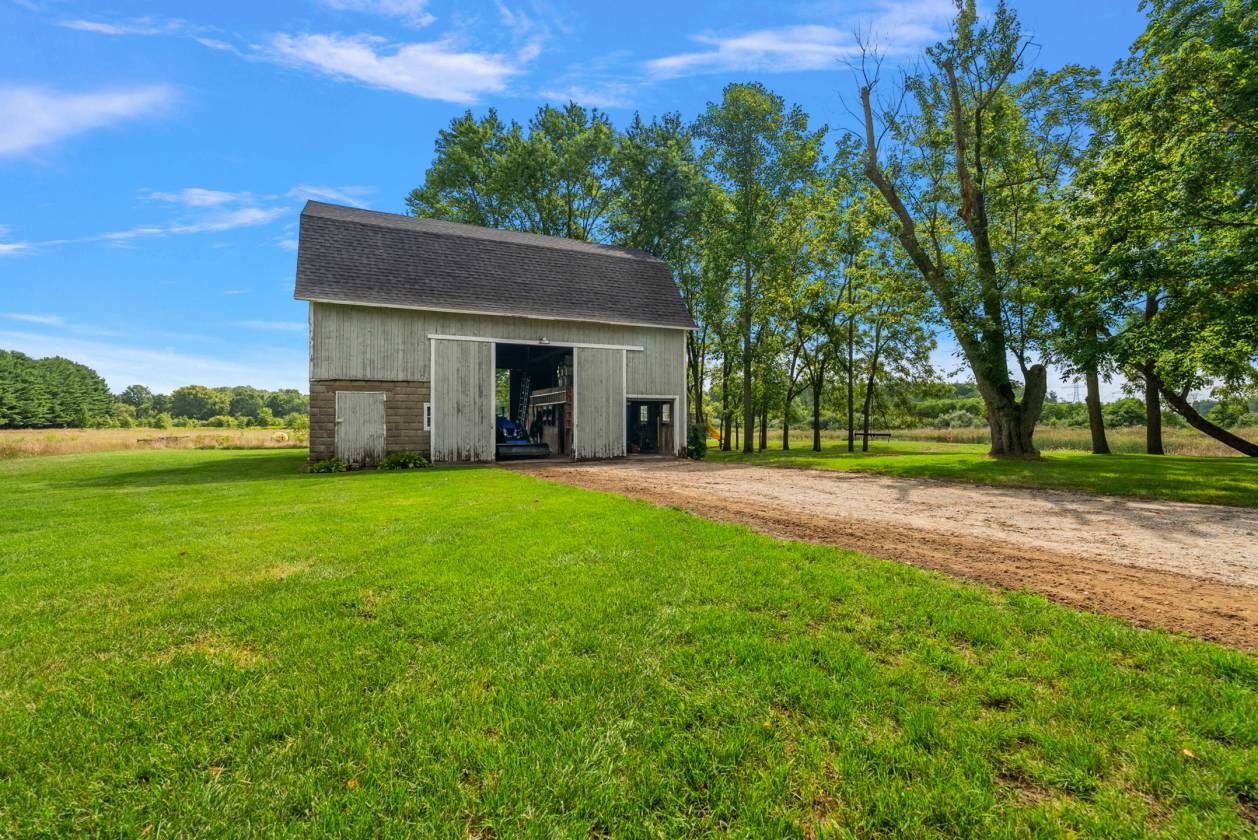 Restored to perfection in 2016 capturing the beauty of a 100-year-old Craftsman farmhouse with today's conveniences. The interior is all about simple lines, sleek finishes, lots of windows, gleaming wood floors that deliver a smooth comfortable floor plan. Nicely appointed chef's kitchen with an oversized island is the definition of functional luxury that flows into the dining room and great room with an impressive vaulted ceiling and fireplace. First floor includes a spacious primary suite, powder room, laundry room and mudroom. Upper level provides 3 additional bedrooms each with walk-in closets and a full bath. Boasting 4 bedrooms, 2.5 baths and 2,800 SQFT of living space. Unfinished basement offers optional bedroom or bonus space. Exterior living is enhanced with a nice size patio, fire pit, hot tub and an awesome setting. Seller is a licensed Realtor. Now add a 100 year old barn with workshop, garage, a pond / swimming hole stocked with fish and trails throughout the property filled with grapes, blueberries, woods, hayfield and wandering stream. House has been used as a STR and has rental history. Furniture and farm equipment can be purchased separately. Bridgman schools and located close to all local amenities, wine country, Lake Michigan and more.