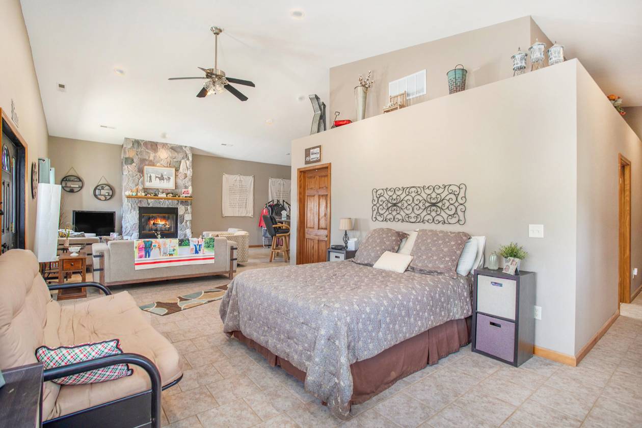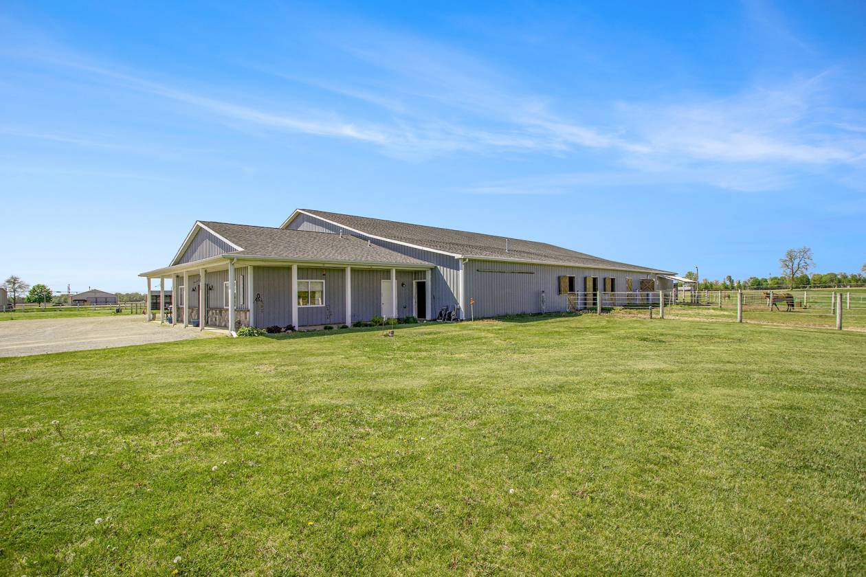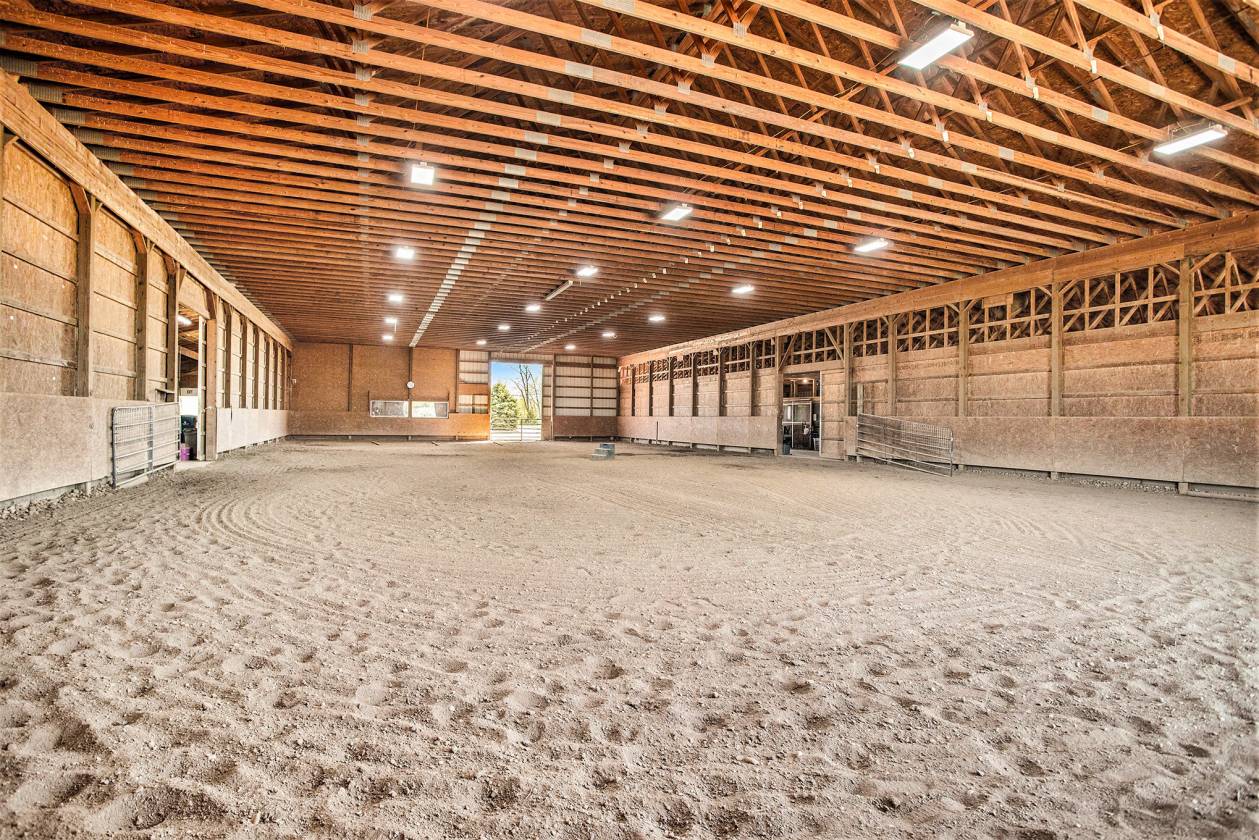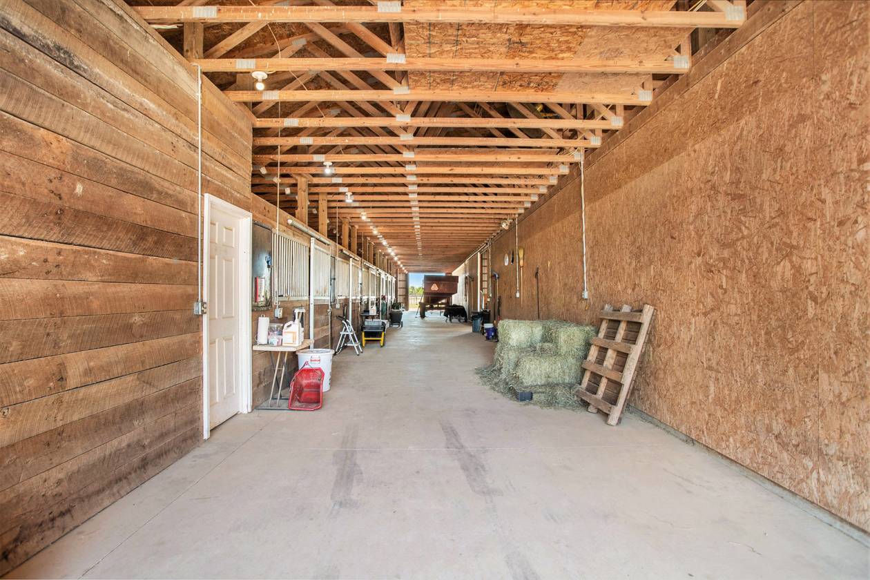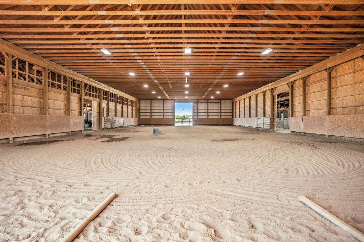 Experience the ultimate equestrian lifestyle at this exceptional horse ranch! Featuring a 60'x120' indoor riding arena, 11 indoor stalls, and a horse washing station, it's a dream setup for horse enthusiasts. Multiple fenced pastures and run-in shelters provide ideal conditions for your herd. A heated 5-car detached garage offers ample space for vehicles and equipment. Enjoy cozy, comfortable living in the 1,000 sq. ft. quarters, complete with a stunning stone fireplace and an open kitchen/living layout perfect for relaxing after a day with the horses. This is country living at its finest!