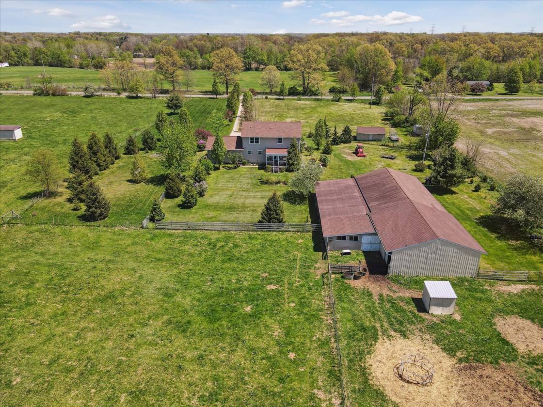 Escape to the country with this charming 3-bedroom, 2.5-bath home on 6.7 serene acres. Enjoy a spacious, yet cozy, living room perfect for relaxing or entertaining, and a formal dining area ideal for gatherings. The kitchen offers generous counter space and a gas oven/range for the home chef. Equestrian lovers will appreciate the large pole barn with 5 stalls, concrete-floor shop/hay storage area, loafing shed, and ''kiwi-style'' fencing. The front pasture has a small 2-stall barn, perfect as a quarantine pasture when needed. Also included is a propane whole-house generator so you're never without power. A peaceful, versatile property ready for your rural lifestyle dreams! Property will be approximately 6.73 acres - split in process.