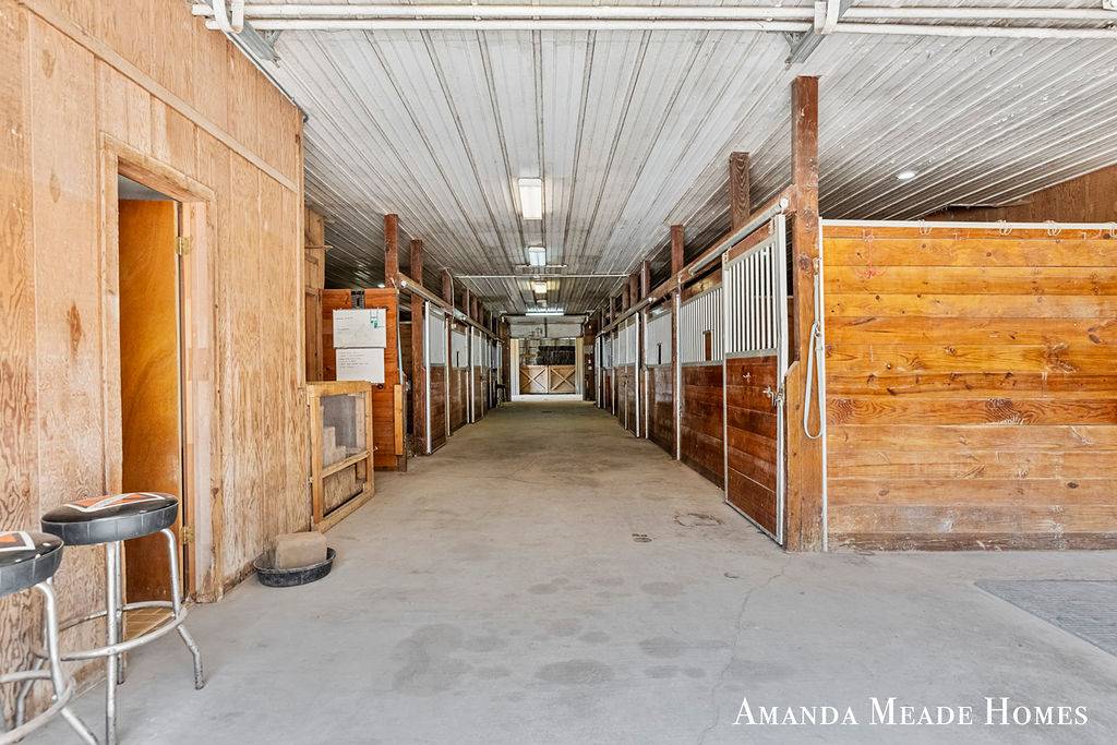 Equestrian amenities are second to none: an 8-stall heated barn with hot and cold water, a 1 bed + full bath staff or guest apartment, an additional half bath for the barn, a workshop, and an equipment garage. Outdoor facilities include a 144' x 200' riding arena and a 64' x 120' indoor arena, both equipped with automatic waterers. Acres of trails, open pastures, and wooded spaces with a firepit offer endless opportunities for riding, recreation, and relaxation.
