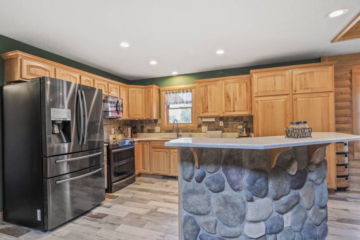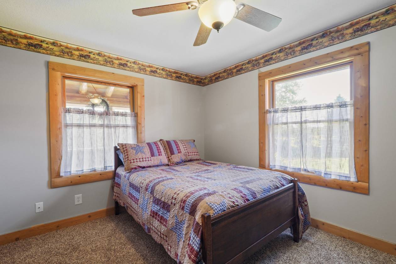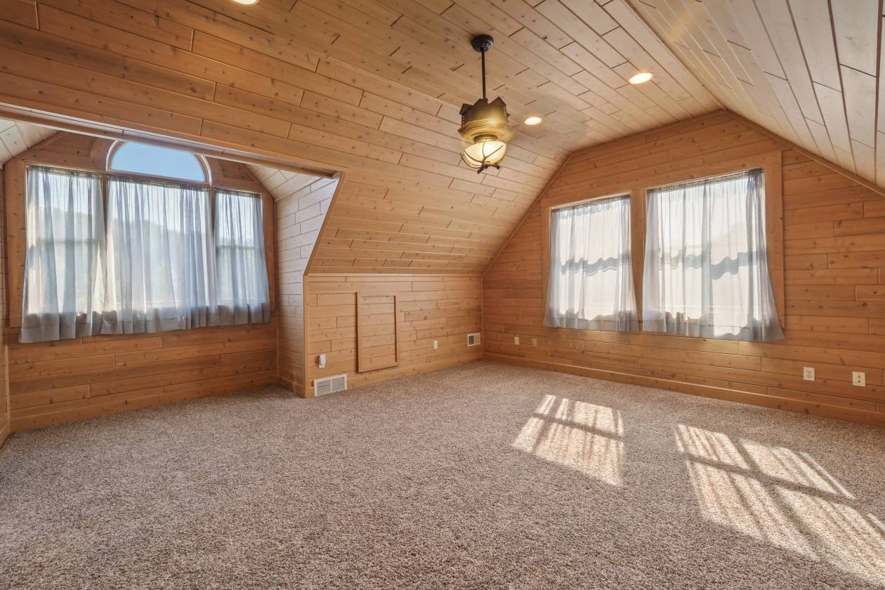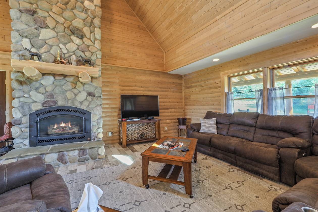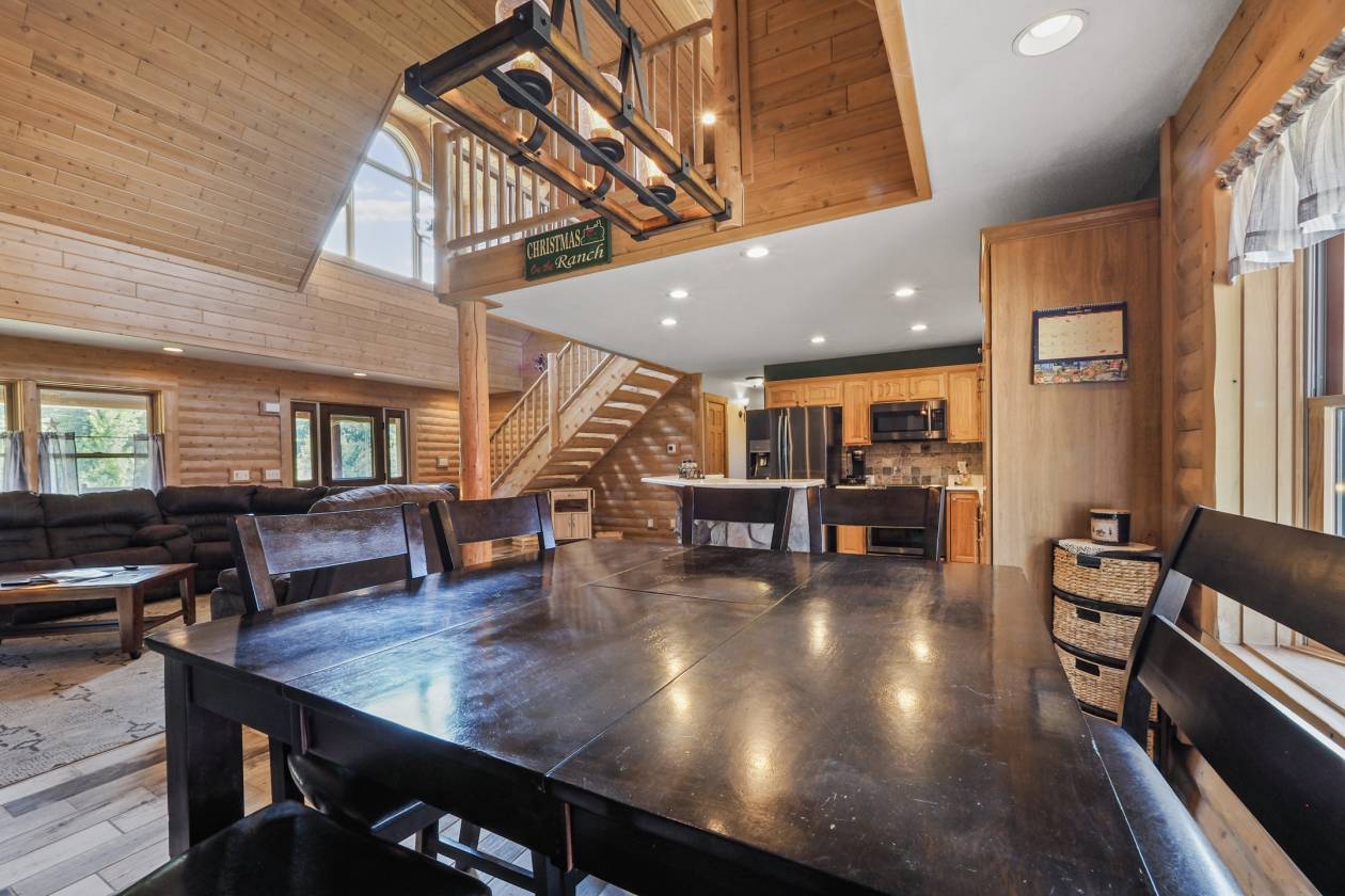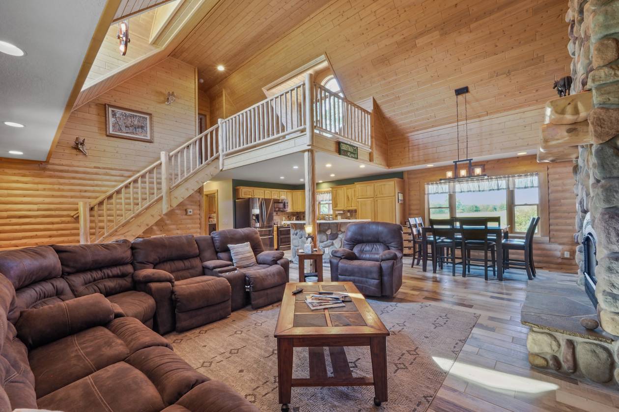 • This remarkable estate features a charming log home with four bedrooms that includes a separate entrance for potential in-law suite and four full bathrooms, boasting vaulted ceilings, stone fireplace with an open floor plan and all the luxuries and coziness of lodge living. The home is located on a property with breathtaking views of the valley surround surroundings making for spectacular autumn colors and wildlife observing. It includes a fully finished walkout basement and has been well-maintained and recently updated, offering an ideal blend of rustic elegance and modern comfort as well as featuring a separate entrance for potential in-law suite