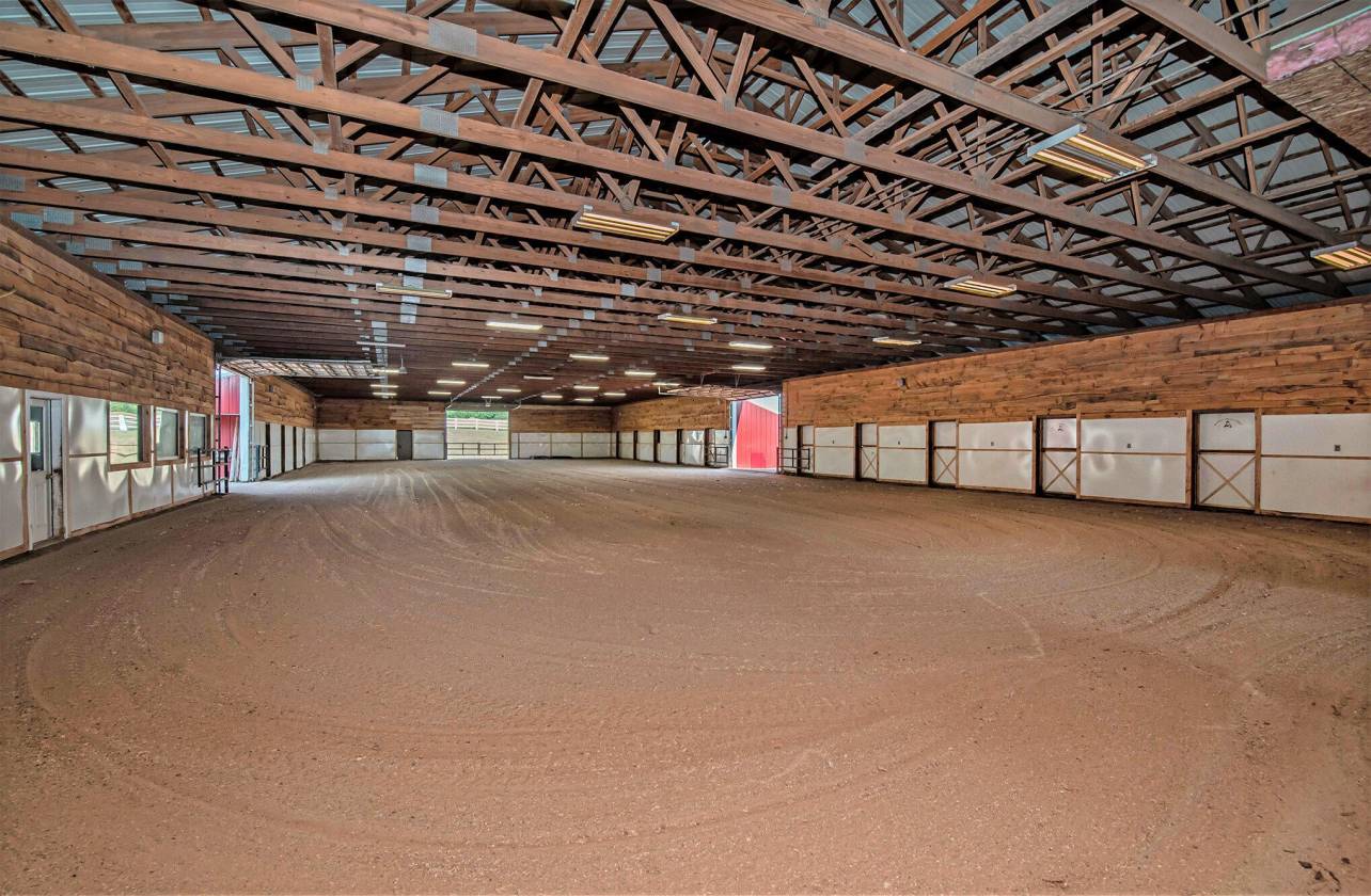 covered arena • pen • hay barn • fenced • second house • 3 barns with 20 stalls • 14 Run-in stalls