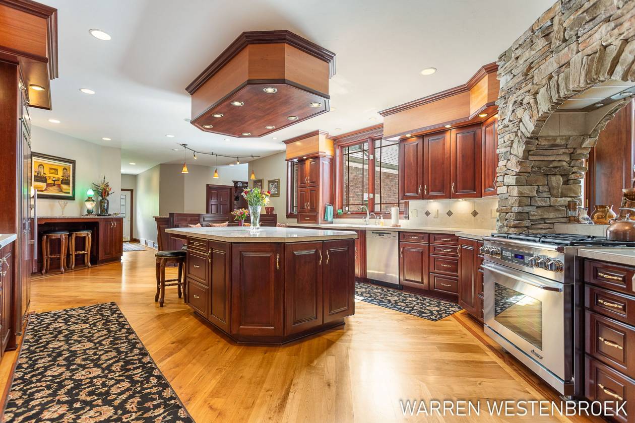 - Large beautiful home, 9000 Sq. Ft. finished all 3 levels, 6 bedrooms 5 baths, massive front entrance with eloquent stairs to the upper level. Main floor is all cherry custom woodwork with real wood floors with all custom inlaid. Main floor Master, Kitchen and all baths have Granite, 4 bedrooms upper, Lower level features a English style pub with all the fixes, Billiard Room, Media room, Exercise Room, So much more!!!!!!