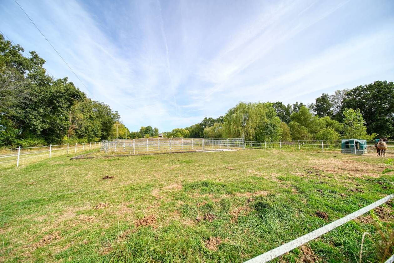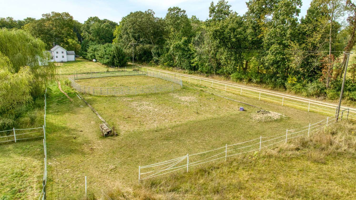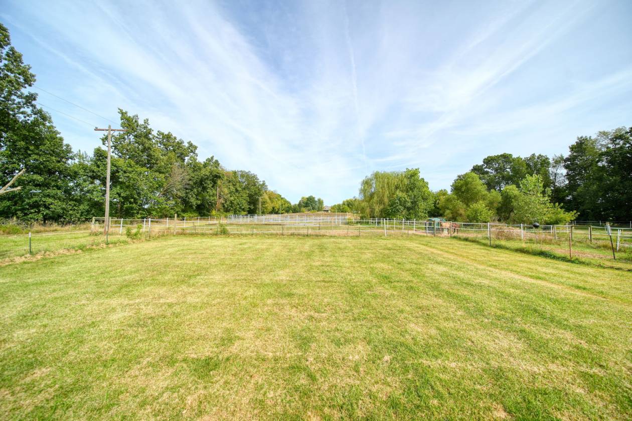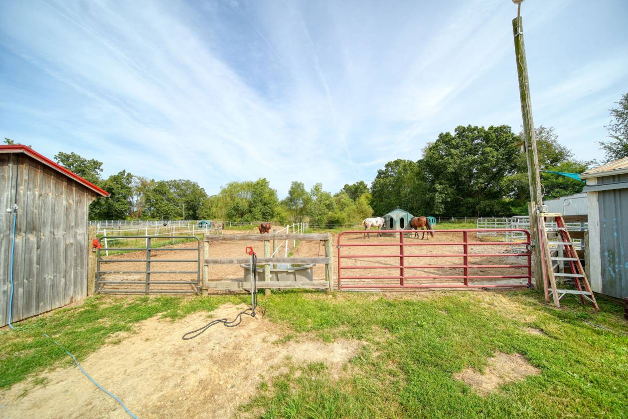 Horse lovers' dream! This 5.1-acre horse-ready farm is equipped with everything you need. The 2-stall horse barn includes one 12x12 stall, one 10x12 stall, a center aisle, feed area, large cedar tack storage, and an attached run-in. An additional lean-to provides hay storage. The property offers 3 grass pastures with poly hot tape and PVC post covers for added safety, plus 2 winter paddocks with compacted limestone for mud management—Paddock 1 features a 20x40 run-in with center divider, mats, kick boards, and fans on both sides; Paddock 2 includes a 12x20 run-in with mats, kick boards, and a fan. A 70x100 outdoor sand riding arena was professionally built and graded for proper drainage. All located in a popular horse community.