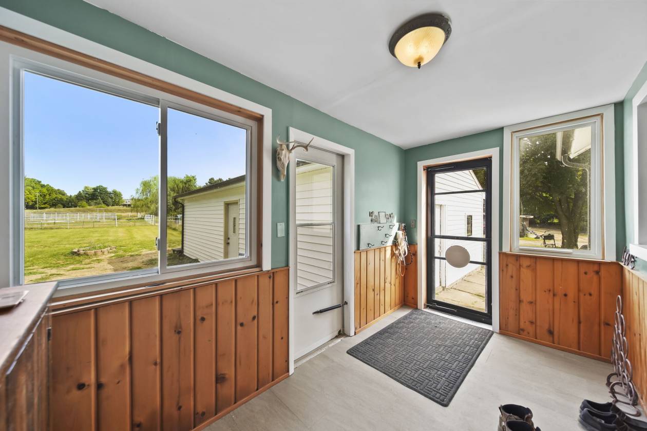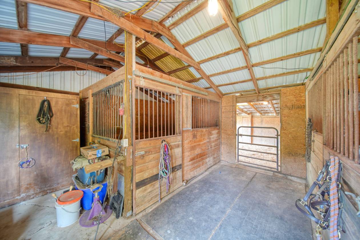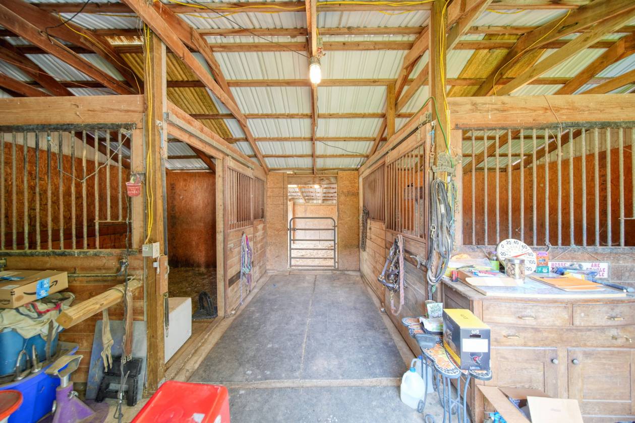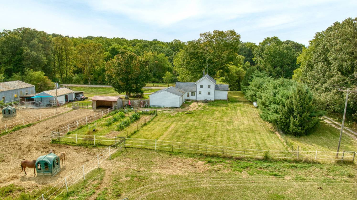 Horse lovers' dream! This 5.1-acre horse-ready farm is equipped with everything you need. The 2-stall horse barn includes one 12x12 stall, one 10x12 stall, a center aisle, feed area, large cedar tack storage, and an attached run-in. An additional lean-to provides hay storage. The property offers 3 grass pastures with poly hot tape and PVC post covers for added safety, plus 2 winter paddocks with compacted limestone for mud management—Paddock 1 features a 20x40 run-in with center divider, mats, kick boards, and fans on both sides; Paddock 2 includes a 12x20 run-in with mats, kick boards, and a fan. A 70x100 outdoor sand riding arena was professionally built and graded for proper drainage. All located in a popular horse community.