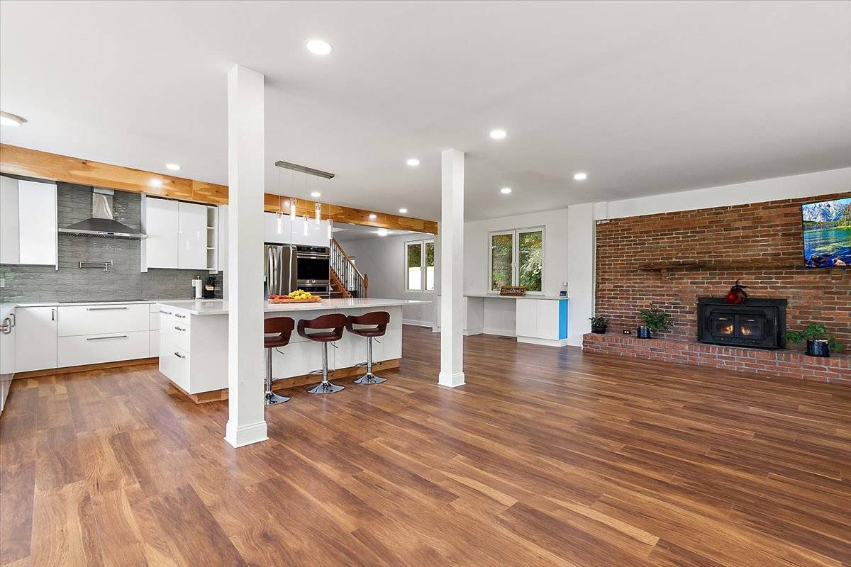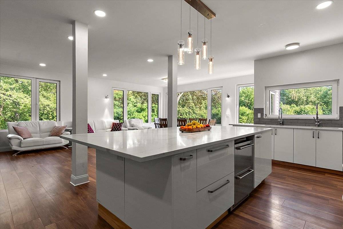 - Designer Kitchen – 10-ft quartz island, premium stainless appliances, and soft-close cabinetry