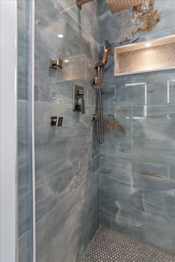 - Spa-Inspired Italian-Tiled Bathroom with double shower in main suite
