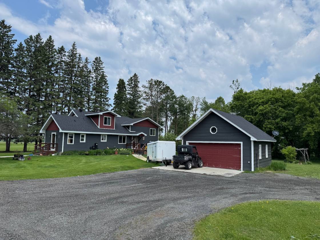 Country Estate / Horse Ranch on 10 acres near Blackduck, MN. Very Private and Peaceful setting "A Must See!" Has a large 5 bedroom 2 bath home, tongue & grove Knotty Pine wood work, multiple living rooms and much more. So many new improvements - new roofs, siding & windows, appliances, flooring and updated lower level. In addition to all of that here's more! Two Garages -one finished & heated. A second home site setup with slab, well & septic ready to put a home on. Large Shop 30'x54' w/ 20'x54 lean-to, Machine Shed/Pole Barn 28'x80' and Garden Shed 12'x16'.