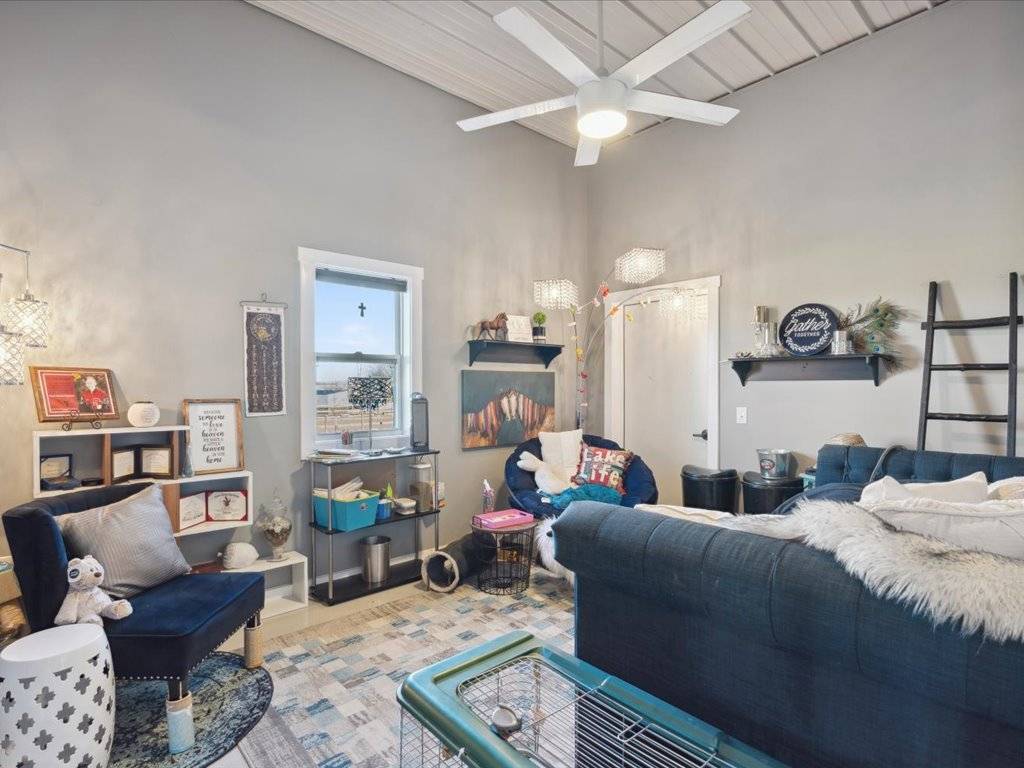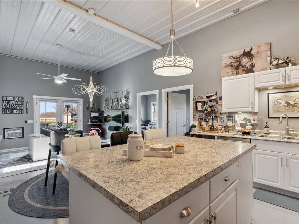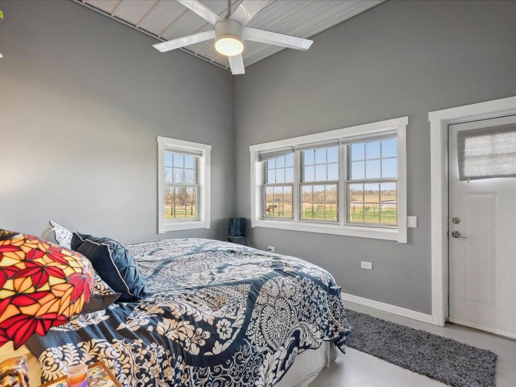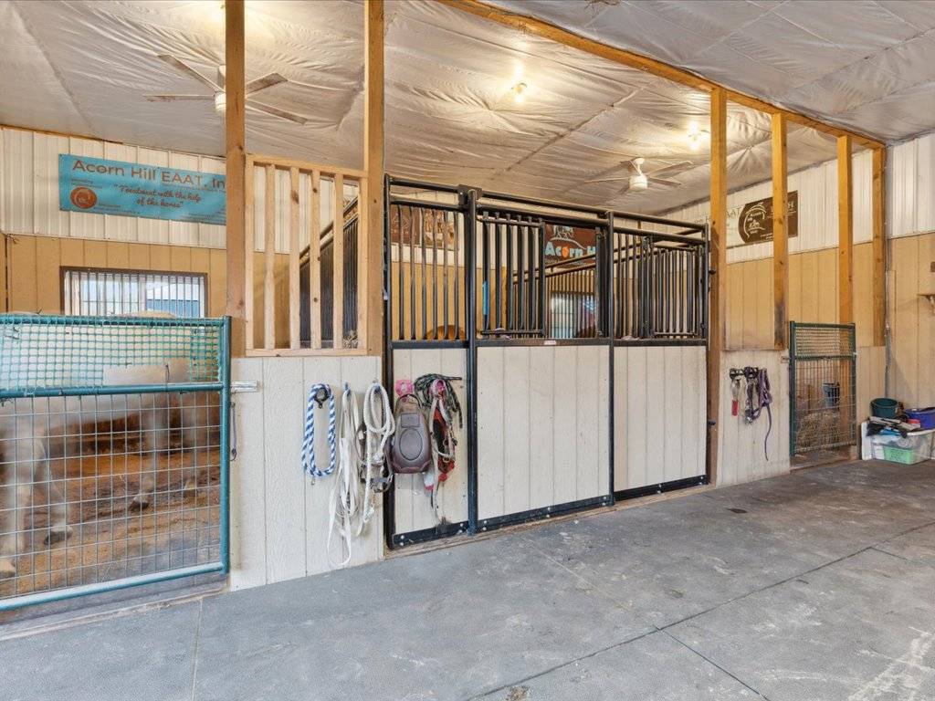 - The main structure is a 36x135 Morton building constructed in 2016. Within it are fully equipped living quarters featuring 2 bedrooms and 1 bathroom with jet tub, as well as guest accommodations with 2 bedrooms and 1 bathroom. The facility also includes multiple garages, horse stalls, a tack room, offices, a pantry, laundry, and ample storage space.
