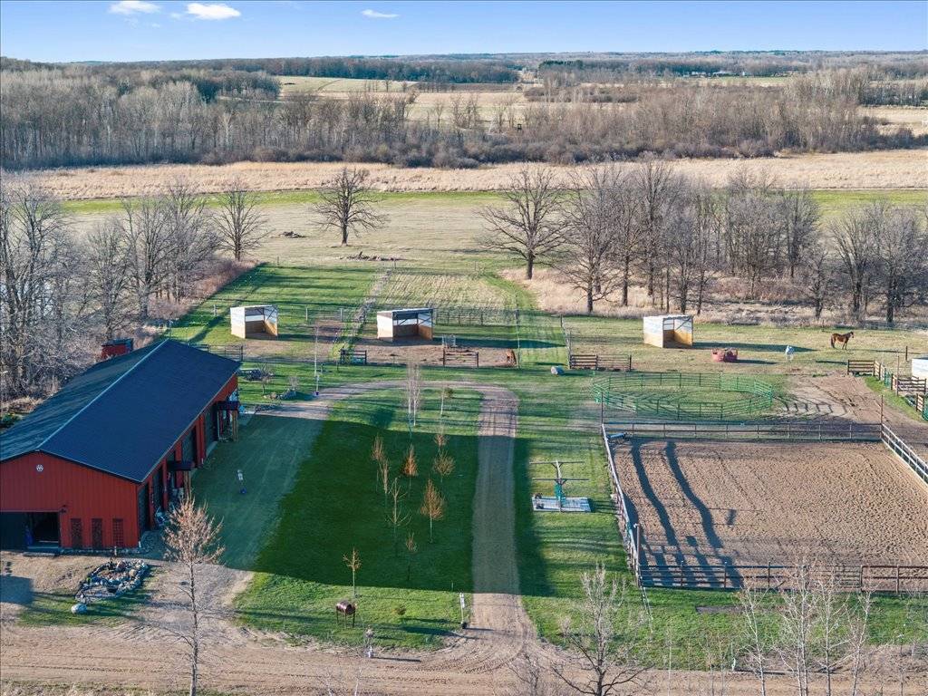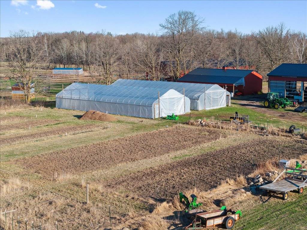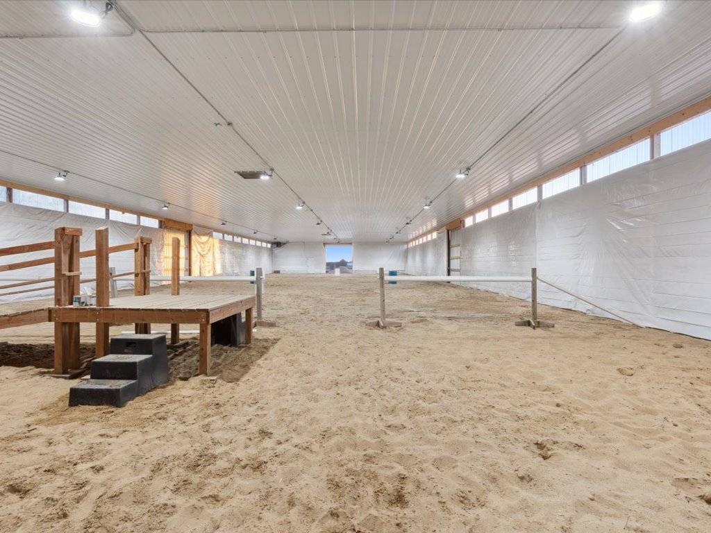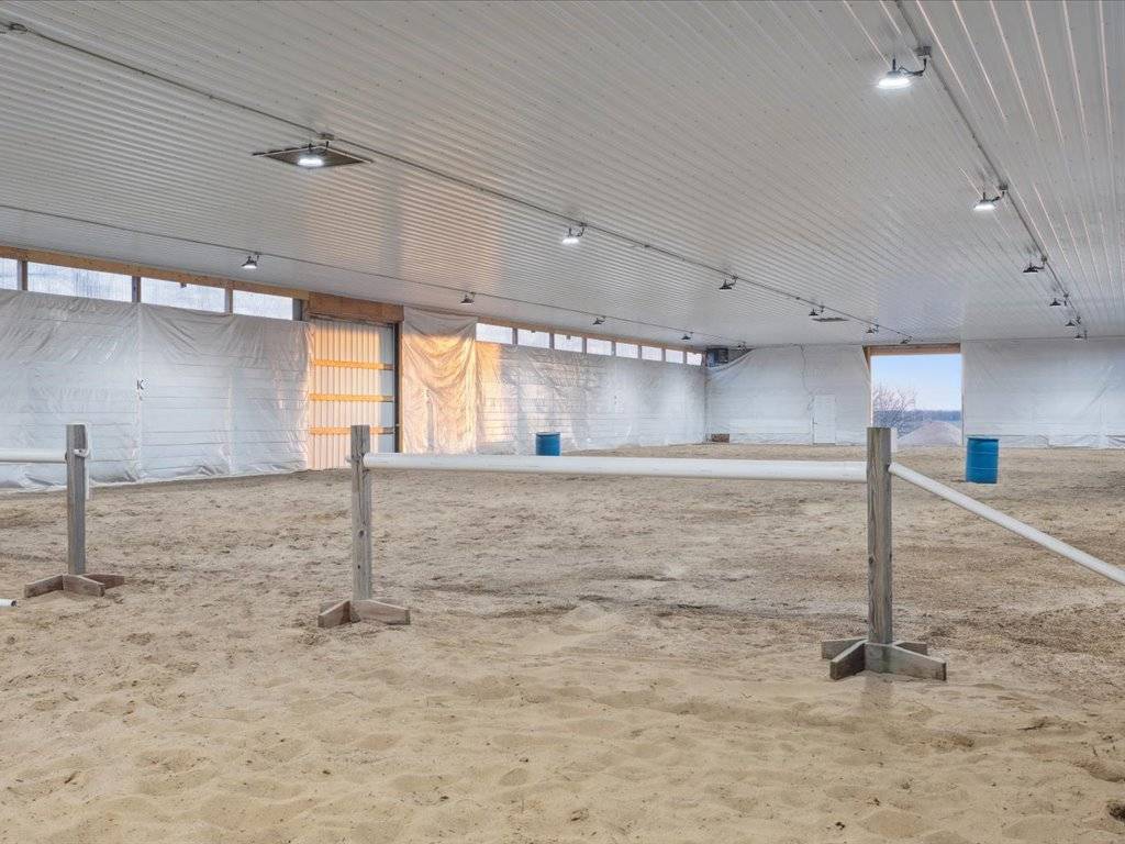 - Prime hay fields, complemented by excellent gardens and several greenhouses, provide an ideal setup for one to self-sustain. Additionally, expansive woods with numerous trails offer opportunities for horseback riding or hunting. This remarkable property features a fully lit 72x136 outdoor riding arena and a 60x160 indoor heated riding arena. Additional structures on the premises include a 36x60 machine shed, a 24x48 hay barn with a 12x48 lean-to, as well as a spacious chicken coop. The property has four horse paddocks and two pastures, all equipped with, water, electricity, lighting, and horse run-ins. With 40 acres of trails and ample space to explore, this property is ideal for horse enthusiasts as It offers a picturesque setting, evoking the feeling being out West where you can watch the sun rise over your horses and sun set over your hay field.