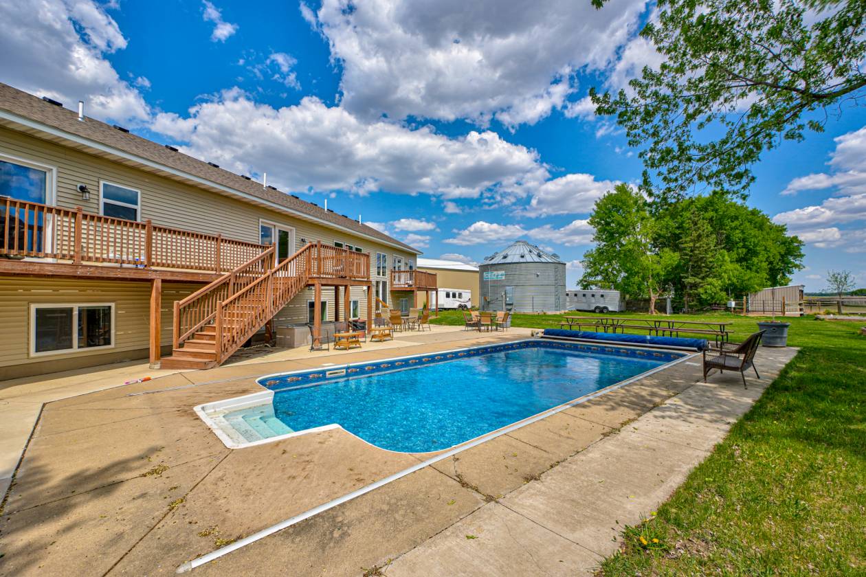 Welcome to 17690 Clayton Avenue East, Rosemount, MN. Exceptional opportunity to own a turnkey 24+ acre horse property designed for the serious equestrian or anyone seeking to operate a successful boarding or training business. This facility offers an outstanding income potential. Key features include: Two indoor riding arenas: a spacious 80’ x 220’ arena for year-round training and a 50’ x 55’ heated arena, perfect for starting young horses, lunging, or beginner lessons. 36 stalls providing ample boarding capacity, multiple turnout areas for daily turnout and pasture rotation, ample hay and equipment storage, a heated 40’ x 80’ workshop for equipment maintenance and additional storage, and a two-bedroom guest suite with a three-quarter bath and full kitchen—great for staff, guests, or rental income The 6000+ square foot on-site duplex-style residence with pool is newly built and thoughtfully designed, featuring a beautiful open floorplan one bedroom unit on one side and a 3-bedroom plus office unit on the other—ideal for owner-occupants, trainers, or as an income-generating rental. Whether you’re an investor, trainer, or horse enthusiast, this property delivers everything you need to thrive in the equestrian world. Schedule your private showing today!