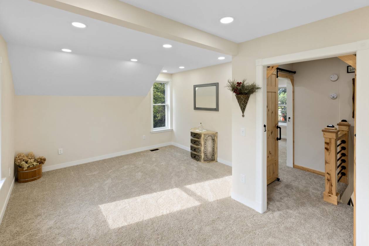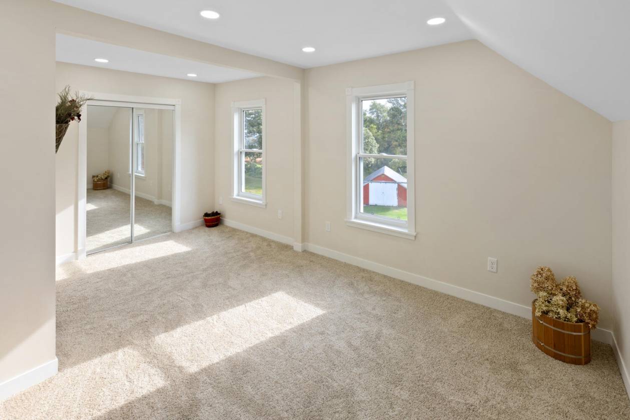 - The big red barn provides abundant storage for hay, with a lower level that can easily be converted into custom horse stalls. There’s also ample room on the property to add new stall barns, an outdoor riding arena, or even a full indoor arena—the possibilities are endless. Wide-open acreage makes maneuvering and parking large trailers simple and stress-free, giving you flexibility for hauling and events.