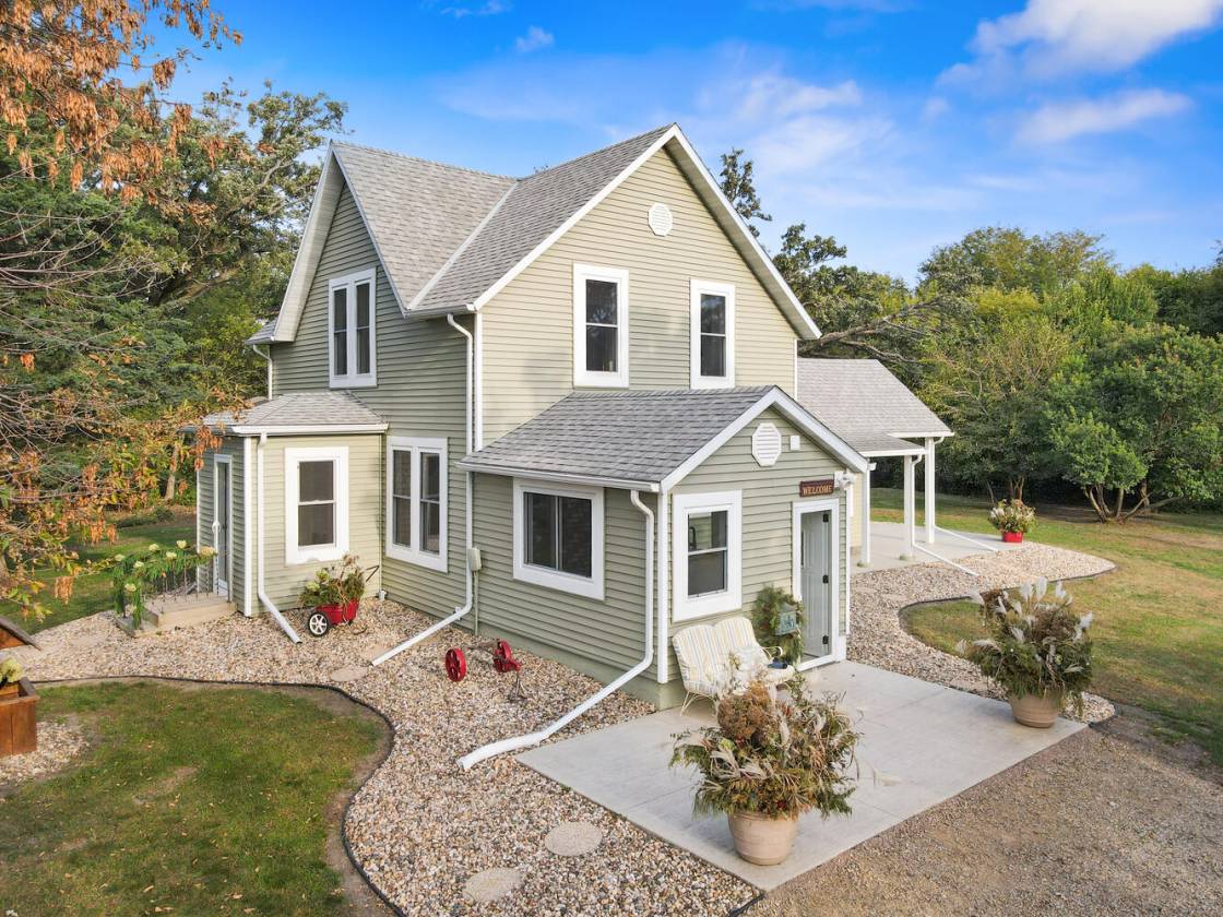 This beautifully remodeled 1900’s farmhouse rests on 12 private acres, offering the perfect blend of charm, function, and opportunity. The property includes 2 detached garages, a large red barn, tractor shed, chicken barn, and storage shed—ideal for horses, livestock, or a variety of hobby farm uses. Surrounding the home are fruit trees, berry bushes, and 5 acres of hay ground, with fenced pastures ready for animals. Recent updates provide peace of mind with new well mechanics, septic mound system, siding, windows, and roof. Set back from the road, you’ll enjoy peaceful privacy, abundant wildlife, and easy access to I-35 & I-90. The barns offer endless potential, whether you envision additional living space, workshops, or equestrian facilities.