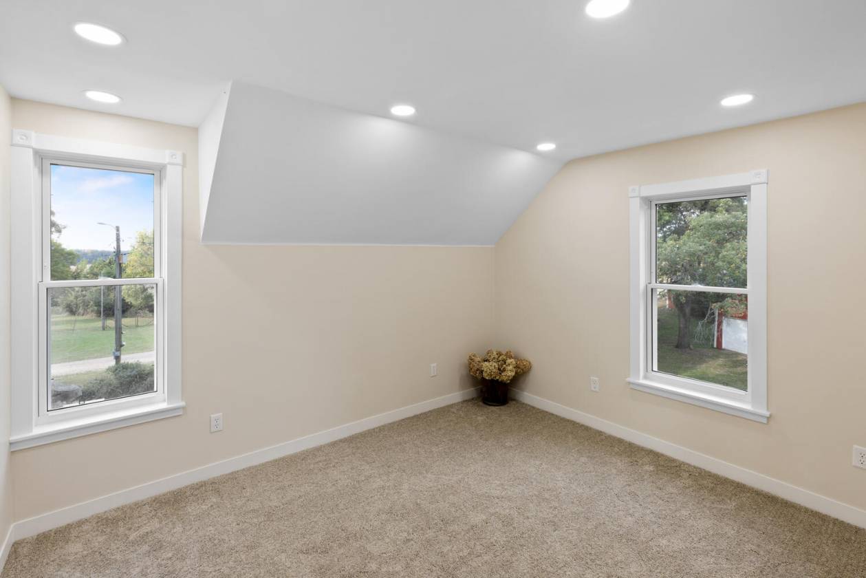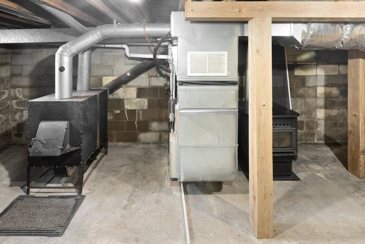 - The home, once a 3-bedroom, now features two oversized bedrooms upstairs, while the main-floor sunroom easily converts into a third bedroom if desired. Large windows invite natural light throughout, offering views of the surrounding pastures and countryside. Designed for year-round comfort, the property is off-grid ready with wood-burning and pellet/corn stoves, plus updated forced-air heating and central air conditioning.