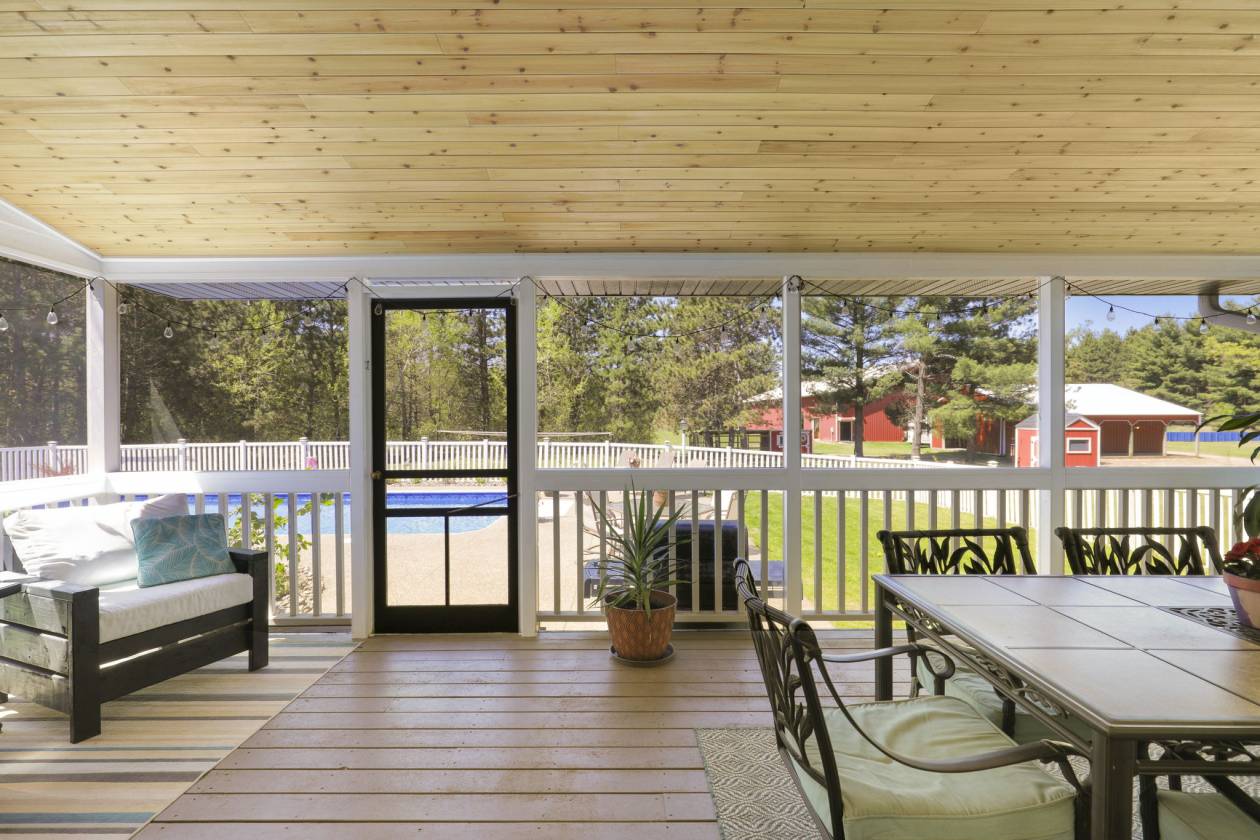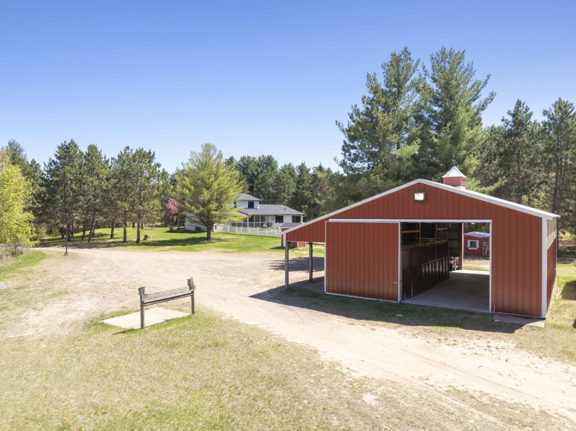 This Beautiful Country home is a great opportunity for Horse Lovers. This 2nd owner home is only available due to relocation. This home boasts 5 bedrooms, 3 bathrooms, nestled on 20 acres with a private pond. This home has been recently updated from top to bottom! You will find 4 bedrooms on one level. This home boasts an eat in kitchen with breakfast bar, black stainless appliances, formal dining room with custom built-ins, main floor family room with fireplace and panoramic views of the salt water pool and beautiful barns. Main floor bedroom and laundry. Beautiful vaulted screen porch with tongue n groove cedar ceiling overlooks the inground Salt Water Pool. There is five acres of invisible fencing for pets. Lots of lower level storage and roughed in for future bath. 2 barns (144x72) 100x72 " room for an indoor arena" with shop (71x24) vaulted celings,overhead radiant heat & light timers. with wash bay. A ( 40x30 ) barn with 3 10x10 horse stalls and lots of storage & (15x14) office. Great news if your a vet you can assume the loan at 2.875 % rate!