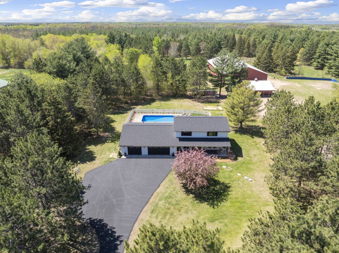 This Beautiful Country home is a great opportunity for Horse Lovers. This 2nd owner home is only available due to relocation. This home boasts 5 bedrooms, 3 bathrooms, nestled on 20 acres with a private pond. This home has been recently updated from top to bottom! You will find 4 bedrooms on one level. This home boasts an eat in kitchen with breakfast bar, black stainless appliances, formal dining room with custom built-ins, main floor family room with fireplace and panoramic views of the salt water pool and beautiful barns. Main floor bedroom and laundry. Beautiful vaulted screen porch with tongue n groove cedar ceiling overlooks the inground Salt Water Pool. There is five acres of invisible fencing for pets. Lots of lower level storage and roughed in for future bath. 2 barns (144x72) 100x72 " room for an indoor arena" with shop (71x24) vaulted celings,overhead radiant heat & light timers. with wash bay. A ( 40x30 ) barn with 3 10x10 horse stalls and lots of storage & (15x14) office. Great news if your a vet you can assume the loan at 2.875 % rate!