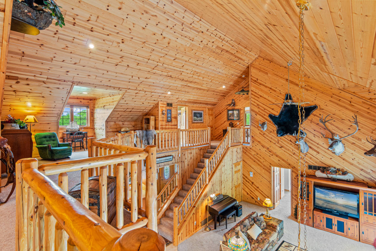 What an amazing opportunity to own this adventurers paradise! You can't build this home for this price. Owners had horses at one time, and pastures are still open. Brand new 60x40 pole shed with an overhead garage door with opener on the south side! Also included are an outhouse, chicken coop, and garden shed. Completely custom home with geothermal energy, in floor heat, open floor plan and much more. One level living and a massive unfinished walk-out basement for you to customize. The living room is impressively large with vaulted ceilings, a skylight, stone fireplace, and an overlooking loft. The kitchen was thoughtfully done with a center island complete with an indoor grill! The upper level is expansive and offers 2 official bedrooms and a finished bedroom/family room above the garage. Another 5th bedroom framed in the unfinished basement. This home offers an enormous 62x16 deck, and a front porch that is 48x8. An additional 52 wooded acres are available that would be great for exploring or hunting. New septic 2023. Bring your buyers to this stunning property! More amenities negotiable as well; including lawn mower, etc.