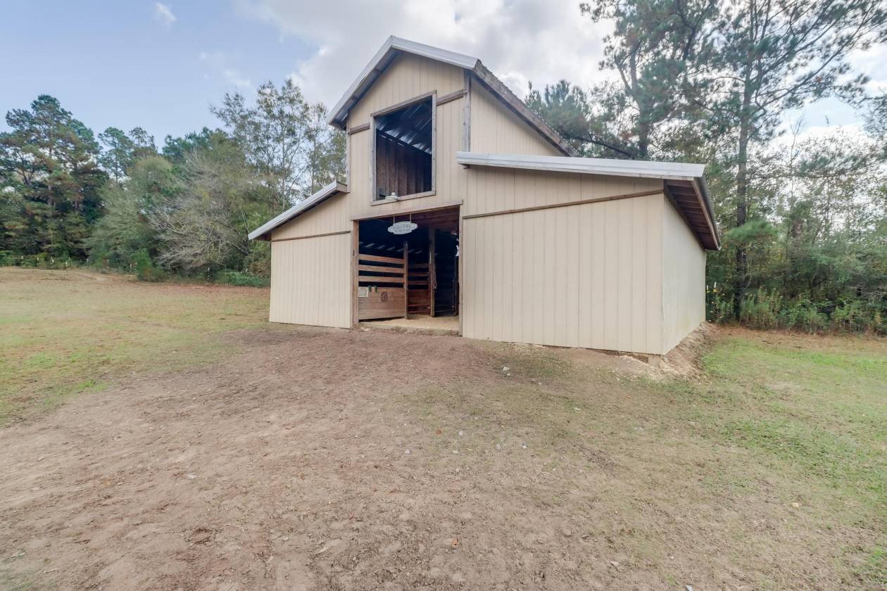Welcome to nearly 10 acres of pure Mississippi paradise—where peaceful country living meets endless possibilities! From the moment you drive in, you'll be taken by the postcard-worthy barn, the well-maintained home, and the impressive workshop. This unique property is thoughtfully laid out with multiple fenced areas and pastures, offering flexibility for horses, livestock, hobbies, or future expansion. A charming swing overlooks a stocked pond, creating the perfect spot to unwind at the end of the day. The home itself sits high, overlooking the front pasture and that magazine-worthy barn. Inside, you'll find a spotless, beautifully refreshed interior with soothing colors, luxury vinyl plank flooring, tall ceilings, and an inviting open-concept layout. The kitchen flows seamlessly into the living area—ideal for entertaining, family gatherings, or game day. The split bedroom plan ensures privacy for the primary suite, which includes a spacious bedroom, ensuite bath with garden tub, separate shower, and double vanities. The additional bedrooms and shared bath are located on the opposite wing of the home. Step out back to a relaxing patio equipped with a powered, retractable awning, perfect for year-round enjoyment. RV owners will appreciate the 50-amp hookup, and hobbyists or mechanics will fall in love with the workshop. This incredible shop accommodates up to four vehicles, includes an attached carport, and offers the option to purchase the 10,000-lb car lift and air compressor. This is the quintessential country lifestyle—room to roam, space for your animals, and all the tranquility you could ask for—yet still only 15 to 20 minutes from Gulfport shopping, dining, entertainment, and major highways (Hwy 49, I-10, and Hwy 67). Wiggins is also just a short drive away. Please allow a couple of hours' notice for showings so the owner can move livestock for easy access. Come experience the serenity, space, and opportunity this incredible property offers!