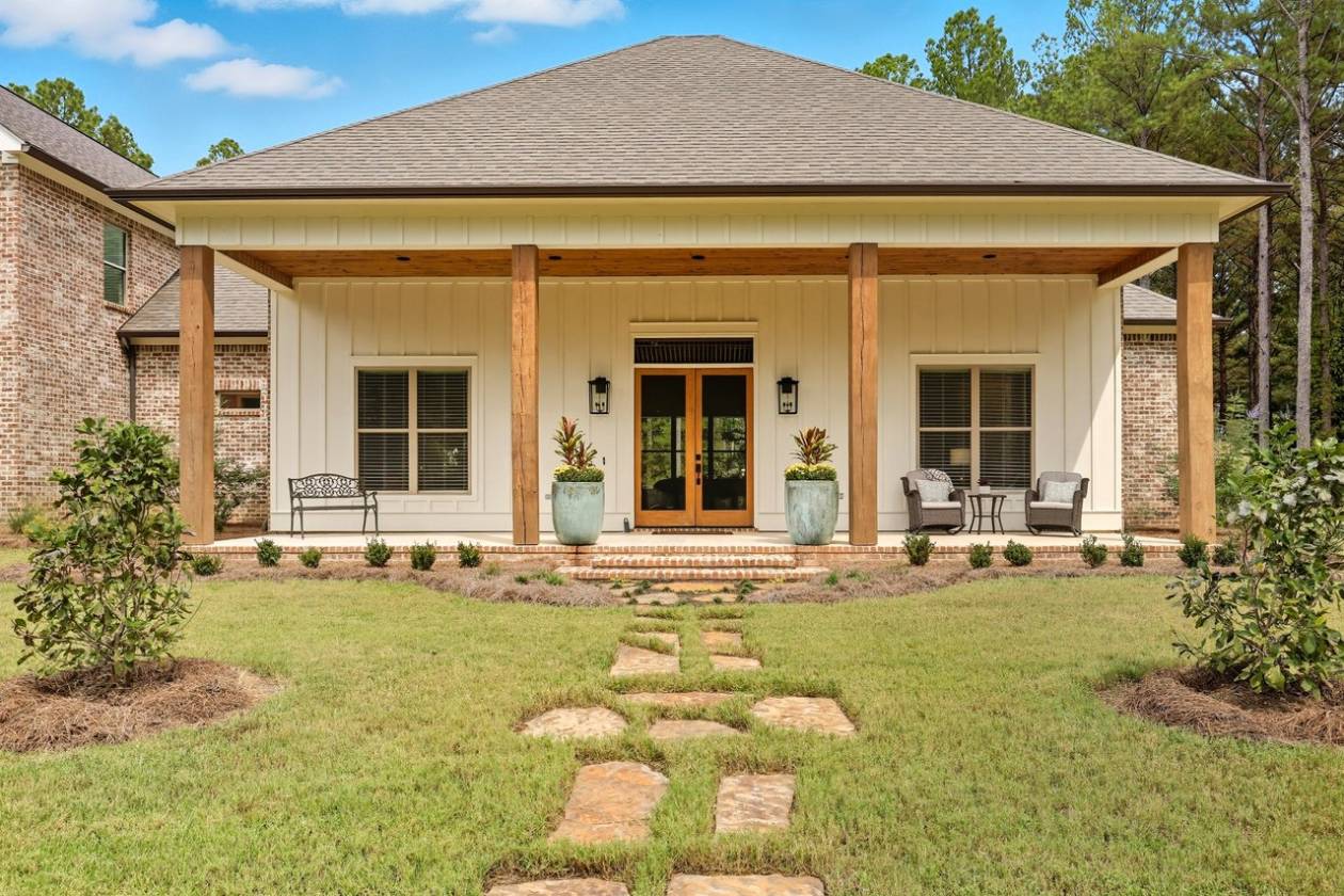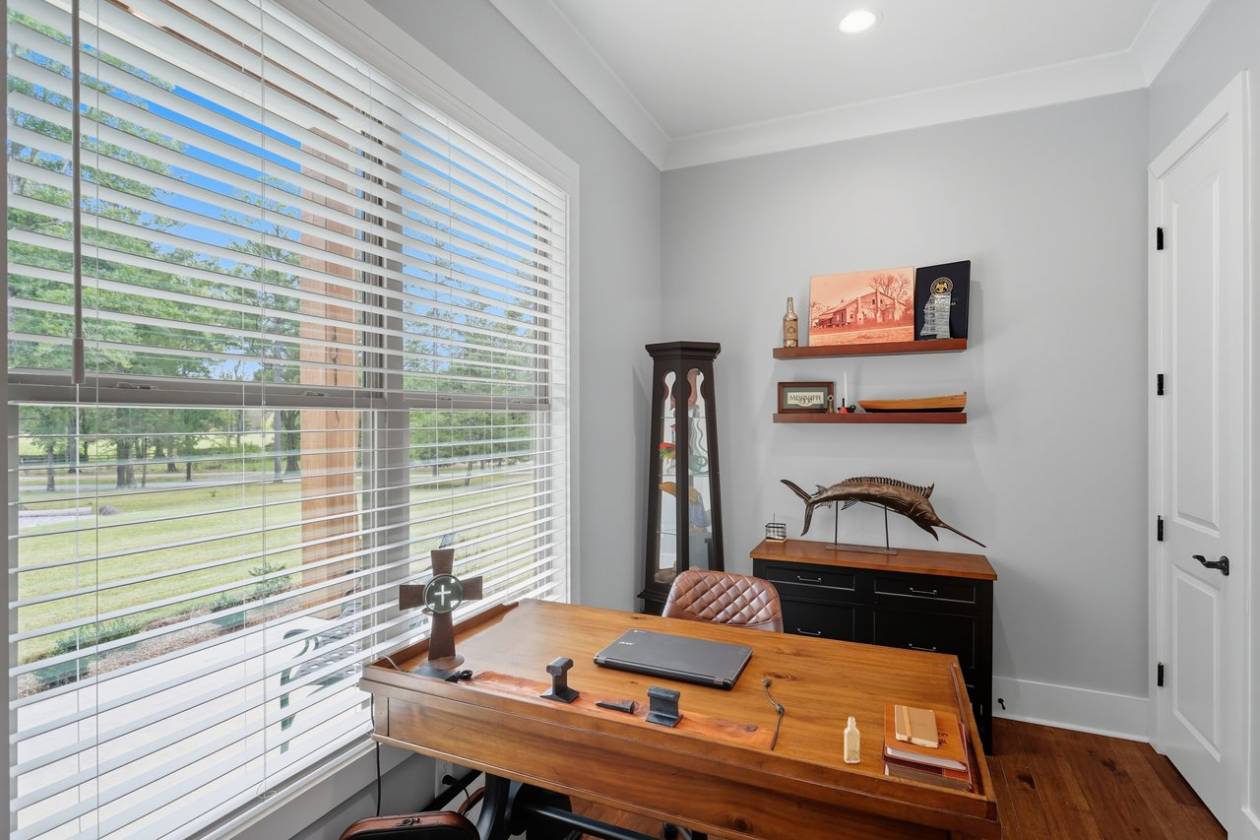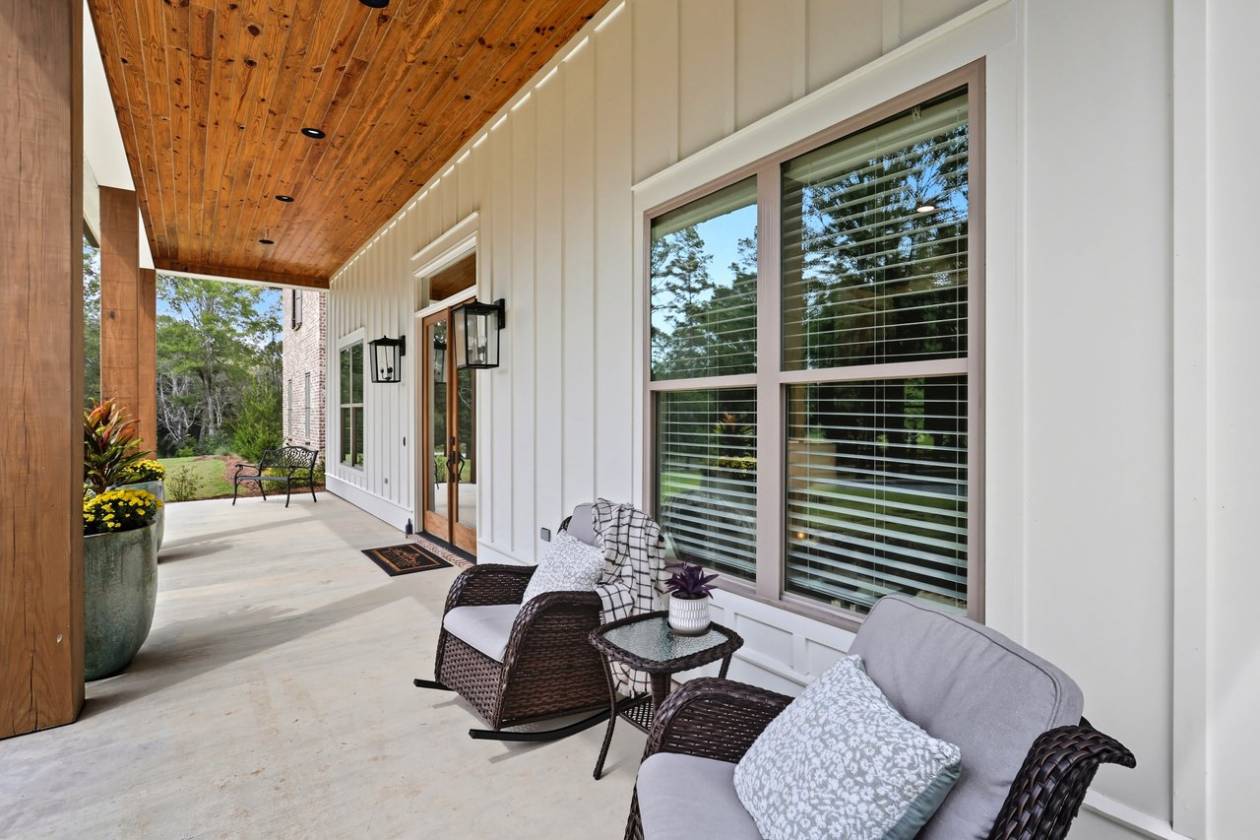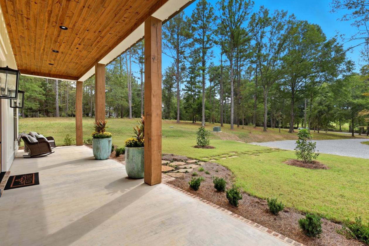 If you've been searching for a home surrounded by trees, your wait is over! Beauty and function come together in this custom-built home, only two years old, set on 6.65 wooded acres, where you can keep up to three horses (one per two acres). This property offers 4 bedrooms, 3 full baths, 2 half baths, a dedicated office, a 3-car garage, plus a workshop/barn with 2 additional garage spaces. Step into the foyer and take in the soaring ceilings and spacious living area, complete with a wood-burning fireplace, built-ins, and views of the private backyard. To the left, a home office connects directly to the butler's pantry—perfect for that morning coffee run. To the right, you'll find a guest bedroom with a full bath, ideal for visitors or in-laws. The primary suite sits just beyond the living area and provides plenty of room for a sitting area. The en-suite bath features separate vanities (including one with knee space), a freestanding soaking tub, a custom tile shower, and two walk-in closets with built-ins. The kitchen is equipped with stainless steel appliances, quartz countertops, and glass-front cabinetry. The adjoining dining area offers sweeping views of the backyard and trees. Off the kitchen, one path leads to the butler's pantry with extra counter space for small appliances; the other leads to a half bath, mudroom with drop zone, laundry room with sink, and the staircase. Upstairs, you'll find a den/playroom, along with two bedrooms connected by a Jack-and-Jill bath, each bedroom has its own private sink and toilet. Back downstairs, step out from the dining area to the covered back porch featuring pine ceilings, an outdoor kitchen, and TV setup. It's the perfect space to start your morning, relax in the evenings, or entertain guests. From here, you can also access the garage storage area directly from the backyard. The property delivers peace and privacy with a country feel, yet it's just minutes from everything Flora, Livingston, and Madison have to offer. Don't miss your chance to call this stunning property home. Contact your REALTOR® today to schedule a private showing!