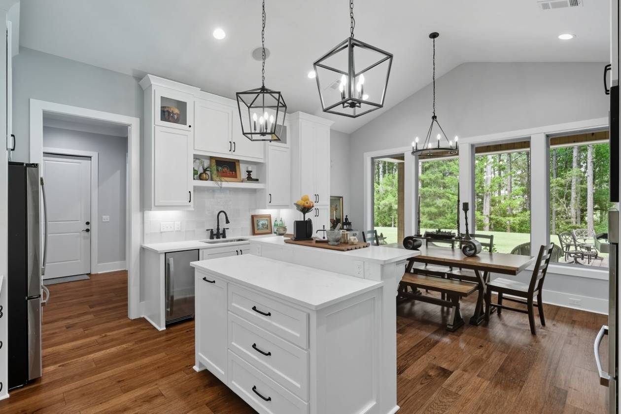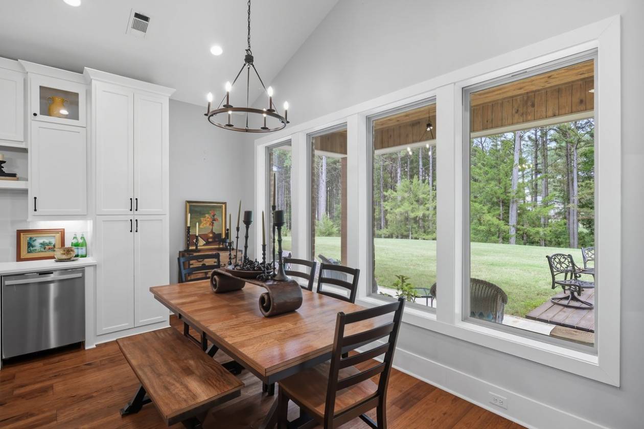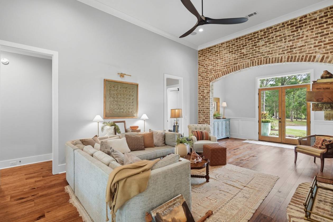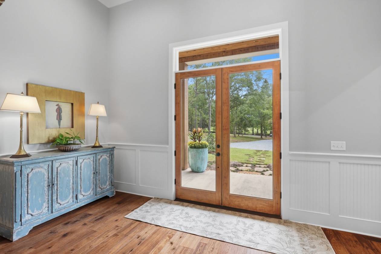 If you've been searching for a home surrounded by trees, your wait is over! Beauty and function come together in this custom-built home, only two years old, set on 6.65 wooded acres, where you can keep up to three horses (one per two acres). This property offers 4 bedrooms, 3 full baths, 2 half baths, a dedicated office, a 3-car garage, plus a workshop/barn with 2 additional garage spaces. Step into the foyer and take in the soaring ceilings and spacious living area, complete with a wood-burning fireplace, built-ins, and views of the private backyard. To the left, a home office connects directly to the butler's pantry—perfect for that morning coffee run. To the right, you'll find a guest bedroom with a full bath, ideal for visitors or in-laws. The primary suite sits just beyond the living area and provides plenty of room for a sitting area. The en-suite bath features separate vanities (including one with knee space), a freestanding soaking tub, a custom tile shower, and two walk-in closets with built-ins. The kitchen is equipped with stainless steel appliances, quartz countertops, and glass-front cabinetry. The adjoining dining area offers sweeping views of the backyard and trees. Off the kitchen, one path leads to the butler's pantry with extra counter space for small appliances; the other leads to a half bath, mudroom with drop zone, laundry room with sink, and the staircase. Upstairs, you'll find a den/playroom, along with two bedrooms connected by a Jack-and-Jill bath, each bedroom has its own private sink and toilet. Back downstairs, step out from the dining area to the covered back porch featuring pine ceilings, an outdoor kitchen, and TV setup. It's the perfect space to start your morning, relax in the evenings, or entertain guests. From here, you can also access the garage storage area directly from the backyard. The property delivers peace and privacy with a country feel, yet it's just minutes from everything Flora, Livingston, and Madison have to offer. Don't miss your chance to call this stunning property home. Contact your REALTOR® today to schedule a private showing!