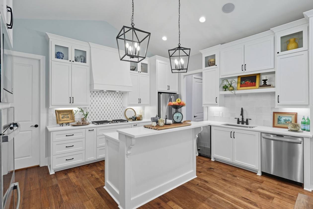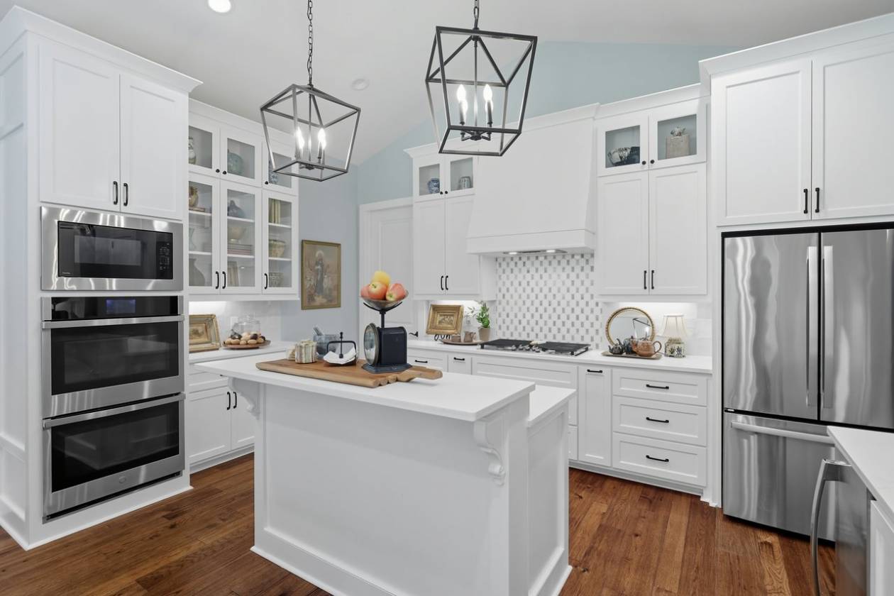 • Kitchen features quartz counter tops, glass cabinets and stainless appliances