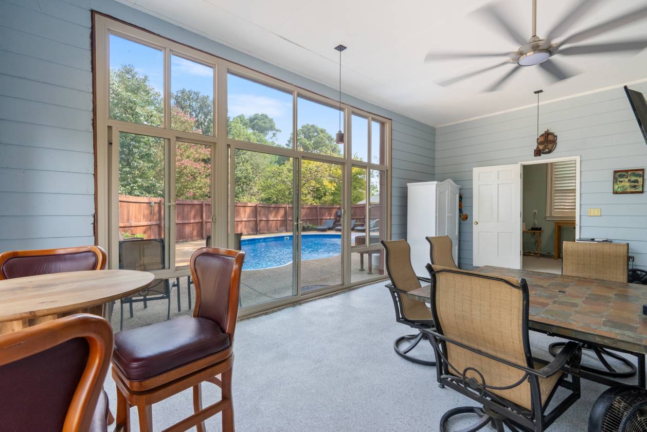 - The land provides a balanced landscape with the perfect mix of open pasture and mature shade trees, creating both functionality and natural beauty. The back deck overlooks the pasture, while Magnolia and Pecan trees frame the front porch. The sellers also own a portion of the adjoining pond, adding scenic views and recreational possibilities. Outdoor features include an enclosed patio for year-round enjoyment and a saltwater pool with a new heater and liner. With its size, layout, and acreage, the property also holds excellent potential to become an incredible horse property in the future, offering opportunities for stables, riding areas, and equestrian facilities.