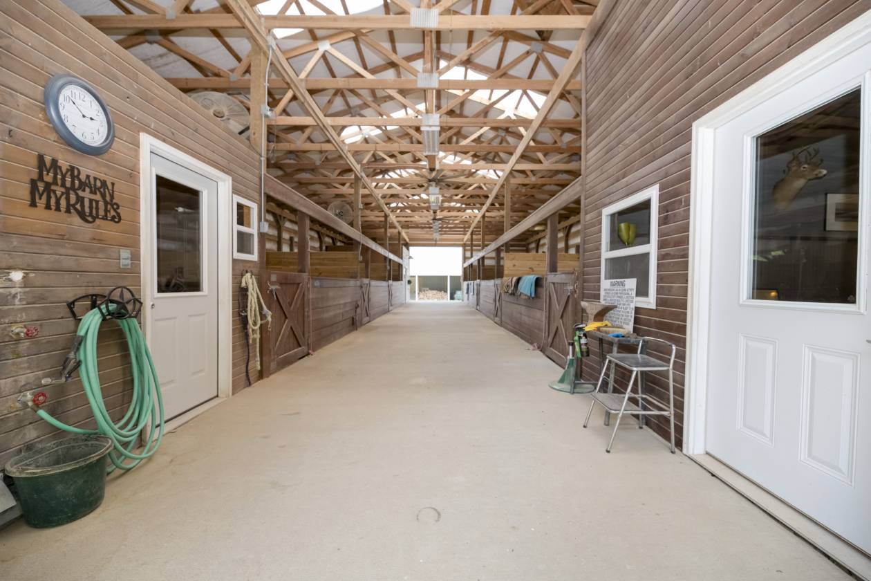 • 7 over-sized box stalls ranging from 13’ x 15.5’ to 13.75’ x 19’ (could be divided into add’l, smaller stalls)