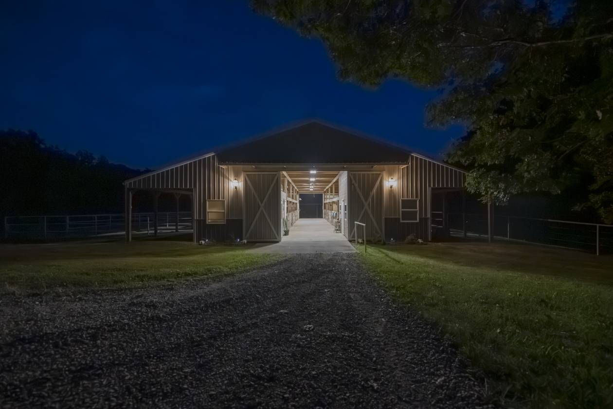 • Attached Lean-to on long wall for equipment storage or additional stalls (35.5’ x 96’)