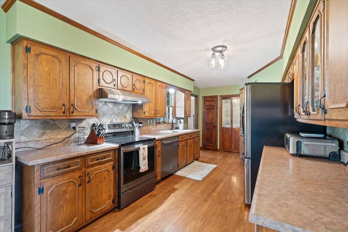 The pride in ownership shows in every room of this home! Step in from the covered front porch into a large living room with beautiful bay window. Make your way through the Country Kitchen into the lovely master suite with large soaker tub and walk-in closet. Enjoy the additional 3 bedrooms and full bathroom with double vanity. Head down to the partially finished basement which offers a family room as well as ample storage area! And then it is time to tour the back of the home and property.