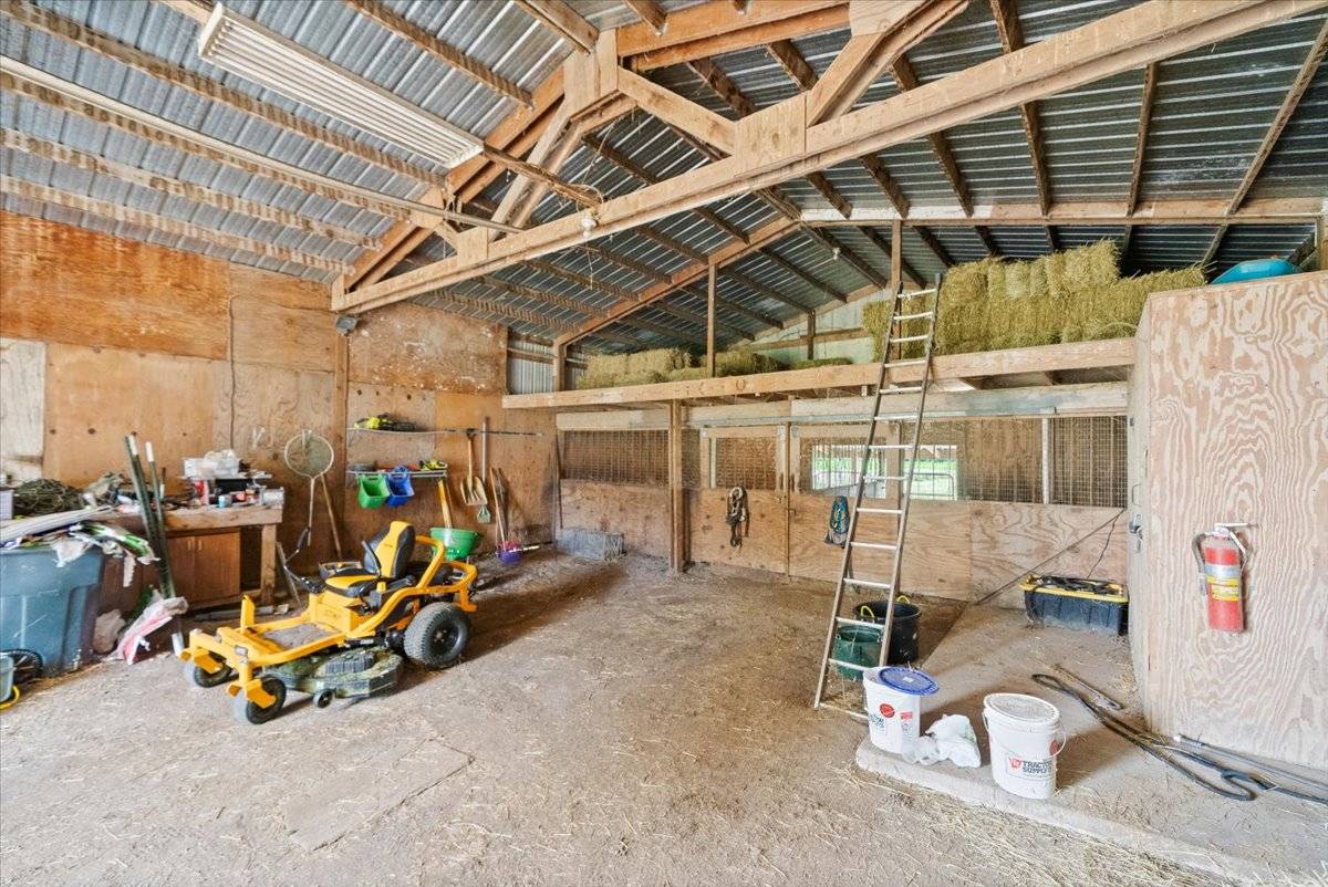 Walk through the sliding glass door onto the large covered deck that is ready for you to enjoy quiet mornings and relaxing evenings. You can fill your days by enjoying the scenery, or bring your animals! The outbuilding has two large stalls, loft for storing hay, tack room and ample storage for other equipment. Approximately 4 acres of pastures are freshly mowed and ready for your horses or small livestock. And the chicken coop stays and the chickens can stay as well! Do your kids need a pony - Cookie is also available for sale! All of this within minutes from Lee's Summit!