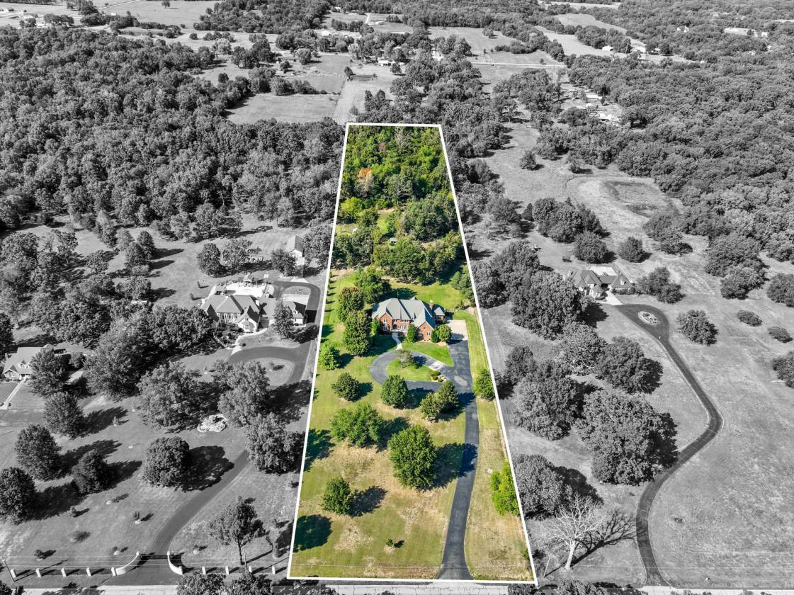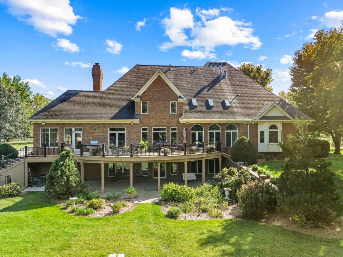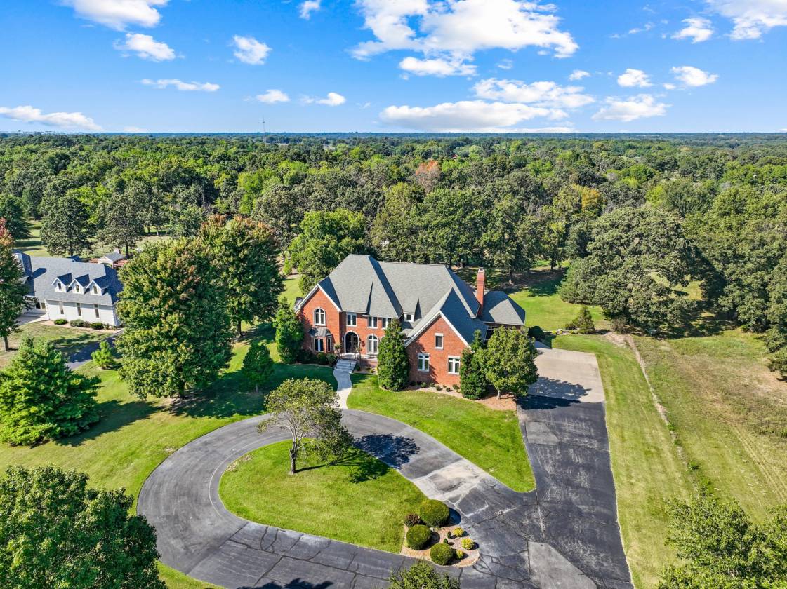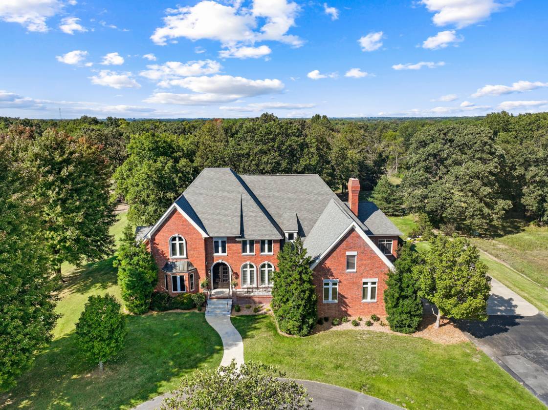 Timeless French-Inspired Estate on 6.5 Pristine Acres Welcome to an extraordinary custom-built residence where stately elegance meets warm, inviting, comfort—a rare combination that makes this Carthage home the perfect backdrop for both intimate family gatherings and grand-scale entertaining. With a grand first impression, this all-brick, two-story home offers a sweeping circle driveway which frames the property's distinguished façade along with a sculpted bay window crowned with a flared copper roof and a beautifully arched front door, all hinting at the refined craftsmanship within. Formal Spaces with Heart- Step into the cathedral foyer, where a motorized chandelier sets an impressive tone. The formal dining room and private study flank the entry, offering spaces for special occasions and quiet work alike. The study's pocket doors and custom built-ins create the ultimate home office sanctuary, while gleaming maple and stone floors flow into the dining room, connecting these gracious formal areas. The living room captivates with soaring cathedral ceilings, dramatic arched windows, and skylights that bathe the space in natural light. A fireplace anchored by tasteful built-ins provides both beauty and function—this is a room that feels as comfortable hosting holiday celebrations as it does quiet Sunday afternoons with family. The Heart of the Home -The kitchen and great room form an open, inviting hub where life naturally gathers. Granite countertops offer abundant prep space and casual seating at the breakfast bar, while top-tier appliances—make meal preparation a joy. Custom Alderwood cabinets provide stunning beauty paired with exceptional functionality. The adjoining hearth room draws everyone together around the gas fireplace, with peaceful views of the wooded grounds. A convenient butler's pantry and utility room with utility sink, second refrigerator, and washer/dryer keep entertaining effortless. Indoor-Outdoor Living at Its Finest -The three-season porch is pure serenity—windows on three sides flood the space with light, while a brick fireplace creates ambiance year-round. Step out to the generous lit deck with metal railings and dual staircases, extending your entertaining space into the natural beauty beyond. The main-level primary bedroom is a true retreat, featuring crown molding, tray ceilings, plantation shutters, and two spacious walk-in closets. The ensuite bath is resort-worthy: separate vanities, walk-in steam shower, air-jet tub, vanity seating with built-ins, linen storage, and even a built-in dresser and ironing board. Ornate metalwork guides you up the staircase to a dramatic skywalk overlooking the foyer and living room. Four generous bedrooms await—two with private ensuite baths featuring walk-in showers, and two sharing a well-appointed Jack-and-Jill bath with dual vanities, tub shower, and abundant storage. The walkout lower level living space offers large windows and French doors that open to a covered patio, seamlessly extending your entertaining outdoors. Custom built-ins surround an exposed brick fireplace and a wet bar offers seating and storage to make hosting effortless. A sixth bedroom with ensuite bath provides flexibility for guests or multigenerational living. The unfinished portion offers tremendous potential, with mechanical systems (water softener, Trane HVAC units, three hot water heaters, CAT 5 termination), storage areas, and framing/electrical already in place for future expansion. Beyond the manicured lawns lies wooded acres with trails leading to a seasonal creek bed. Wildlife abounds, creating a peaceful, private setting that feels worlds away yet located just outside Carthage. This Nantucket Trace-inspired estate balances formality with livability, creating a home where memories are made and traditions are born. From quiet mornings in the sun-drenched living room to joyful gatherings that spill from kitchen to deck to patio, every moment here feels special.