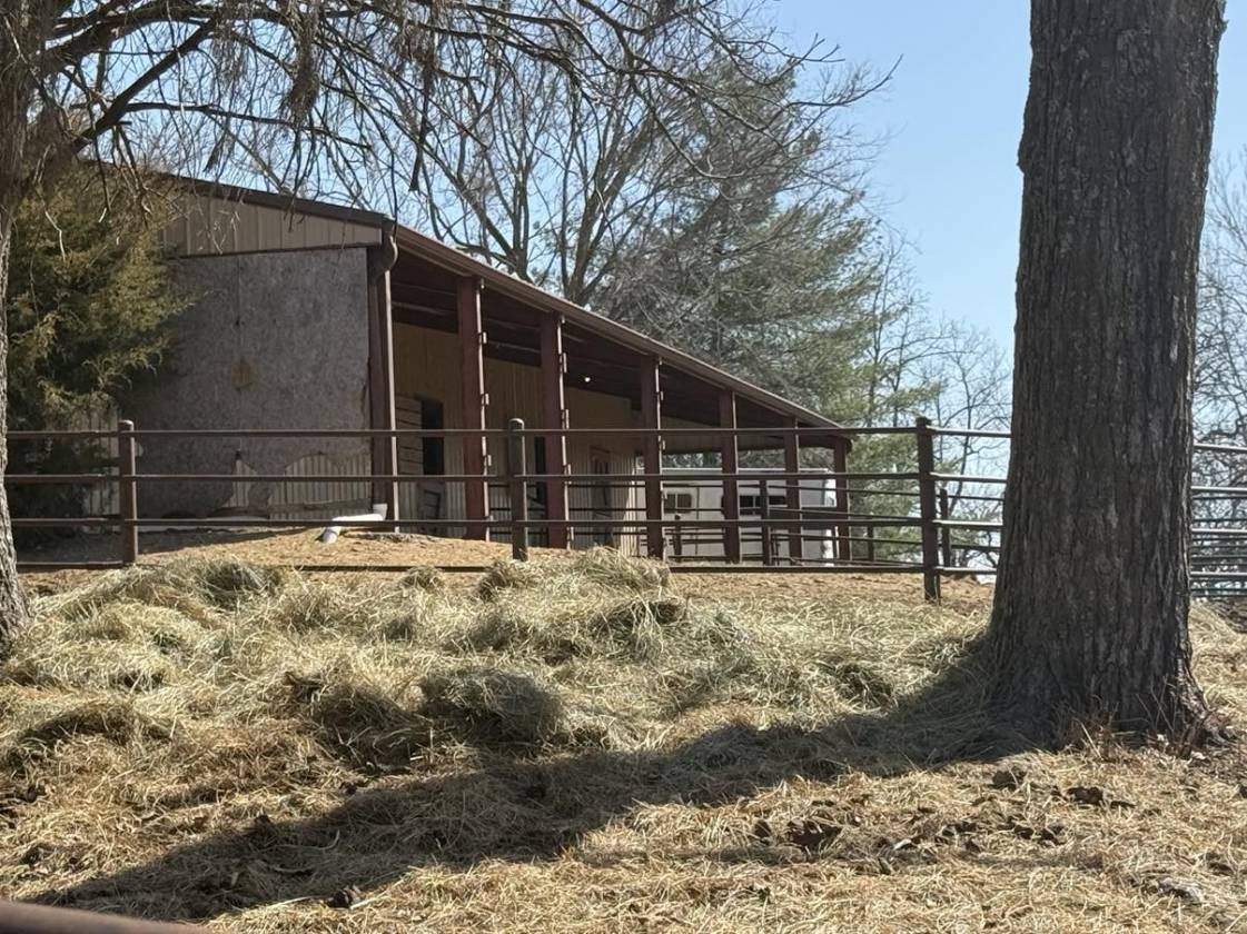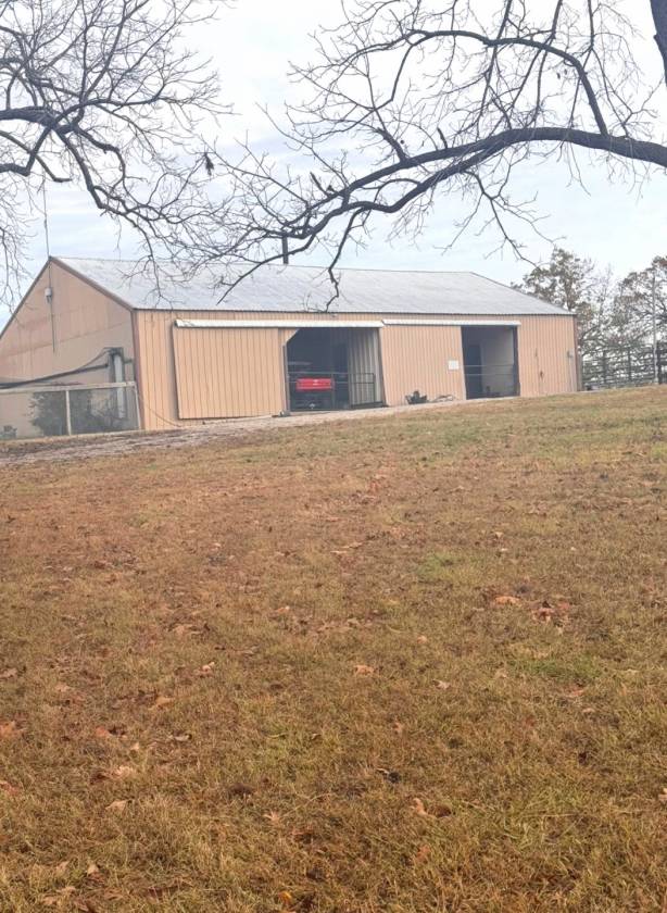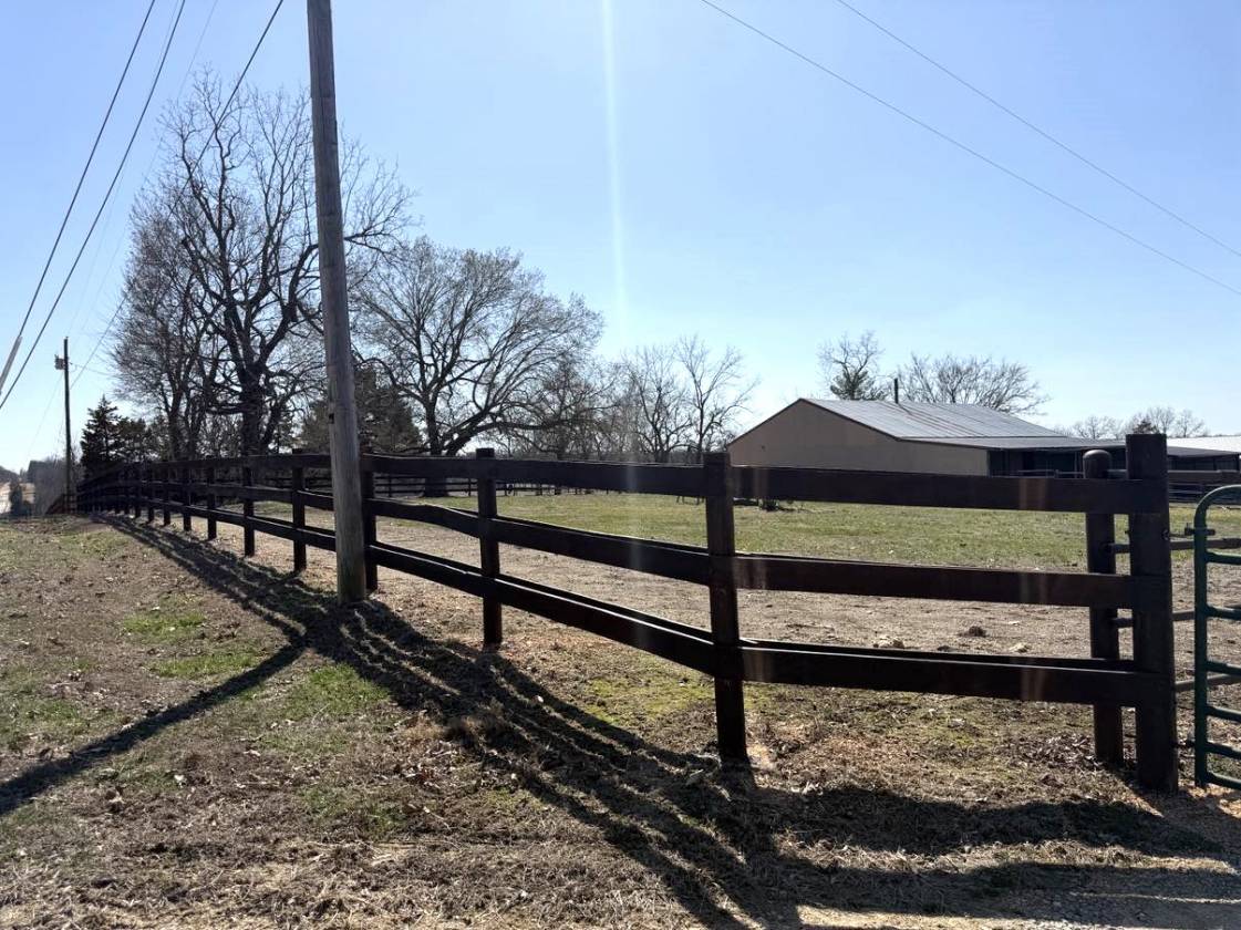 GREAT HORSE PROPERTY 54 acres more or less, located in the Missouri Ozarks - great mixture of woods and useable pasture land. All Land but a small section is fully fenced, with a creek with wet weather springs, and a pond. Perimeter fence is barbed wire with natural land barriers and horse fence is a mixture of metal pole fence, three board wood fence, and cable fence. The property if fully gated with two entrances available - one to the house, one to the barns.