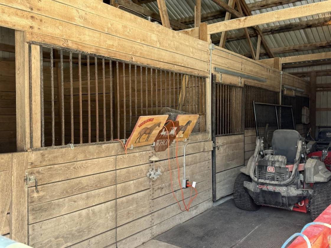 - The second barn is set up for equine breeding and includes a stall set up to do veterinary work as well as artificial insemination of mares. This barn also features a lean to off the back of it for storage of equipment or for livestock. In addition, one of the stalls has been set up as a chicken coop for raising of chickens.