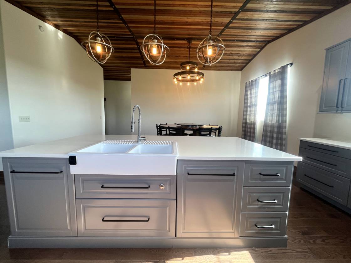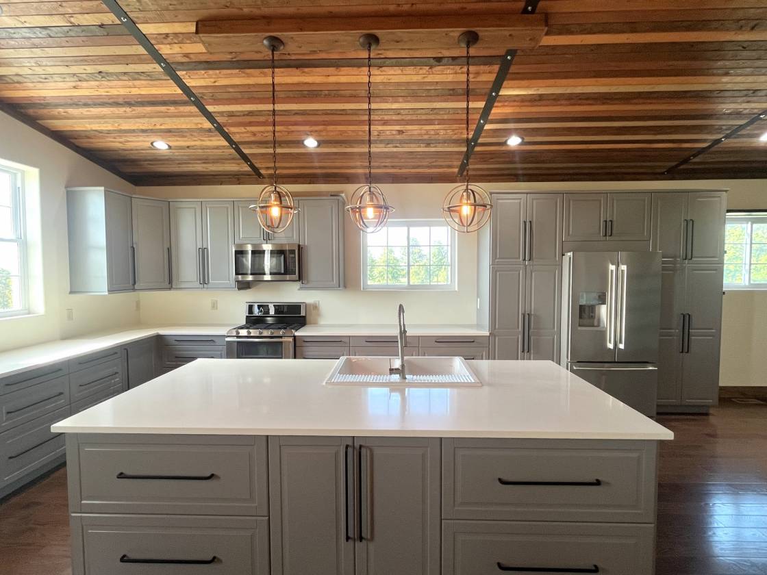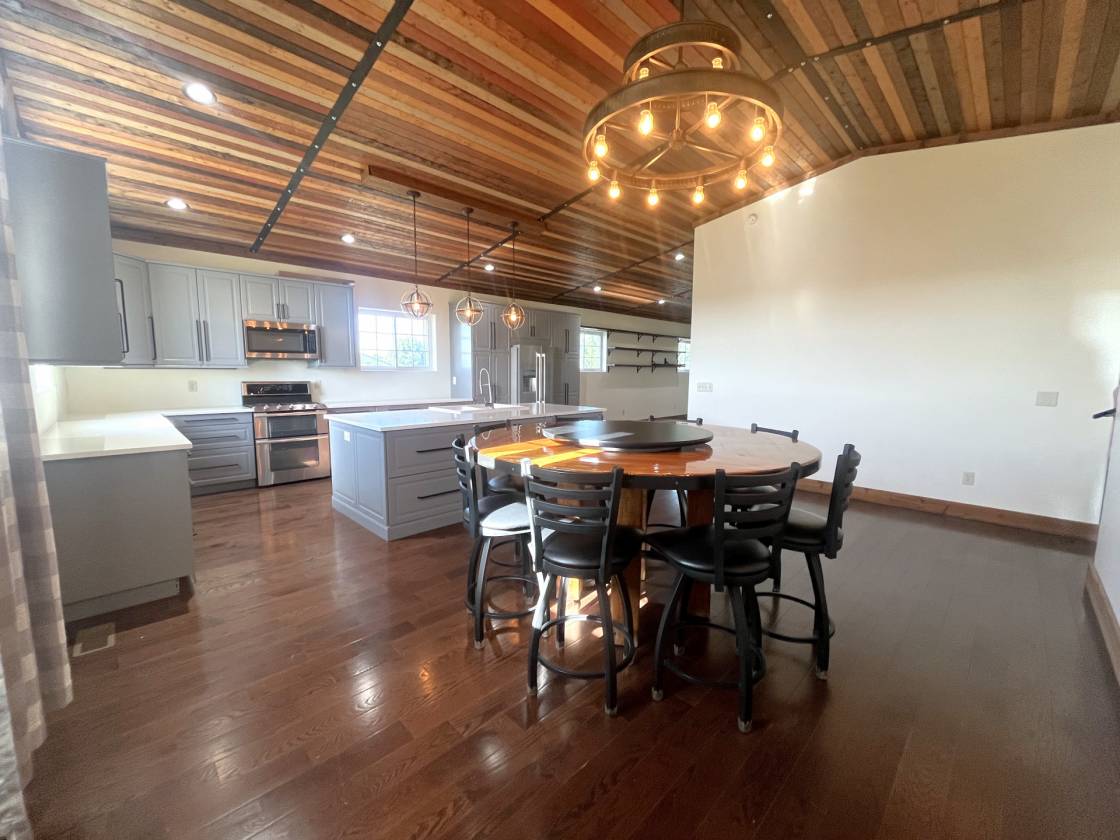 Pull up the driveway to a picturesque lane to arrive at your custom barndominium. Inside, soaring wood ceilings, a chef’s kitchen—complete with quartz counters—with open concept living. Two cozy bedrooms, office, laundry and bath are just down the hall.