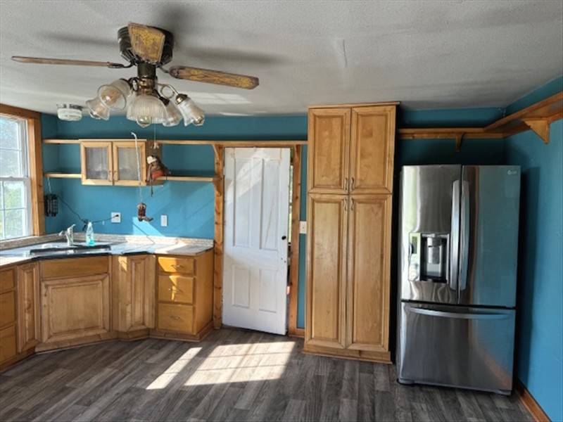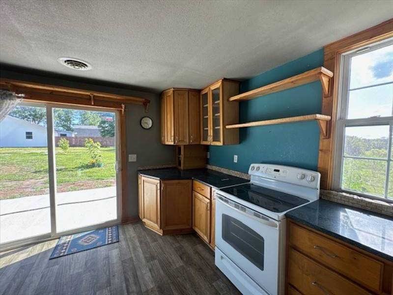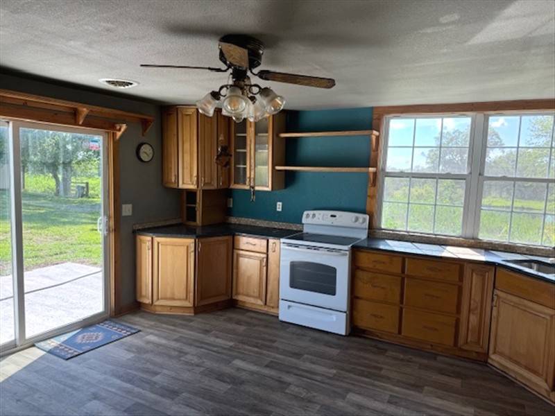 • Cozy wood burning stove. Eat in sized kitchen and large bathroom with the utility closet. Great new concrete patio to watch the sunrises and sunsets.