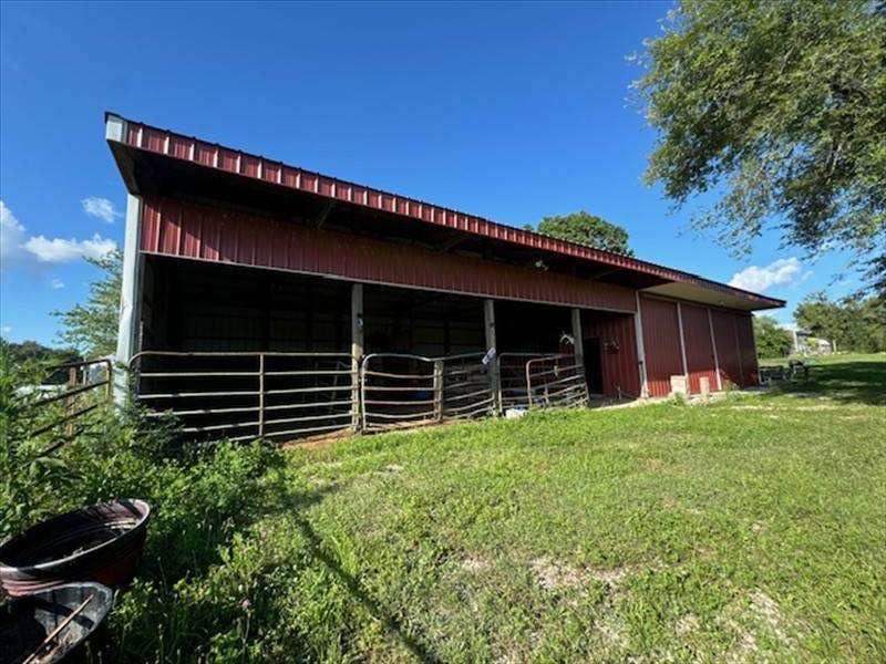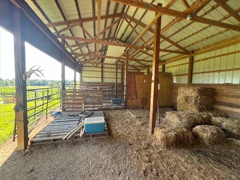 • Cute barn with 4 stalls, fenced perimeter, pond. Waterers near the barn lot. Space for trailer, hay, tack storage. Room for a circle pen. Perfect grazing property.