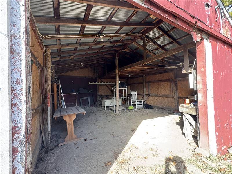 • 6x7 storage shed with wood floor, siding, and electric. 20x23 dirt floor pole shed with electric and an 8x8 lien to and chicken run. Add stalls inside or build onto the existing shed.