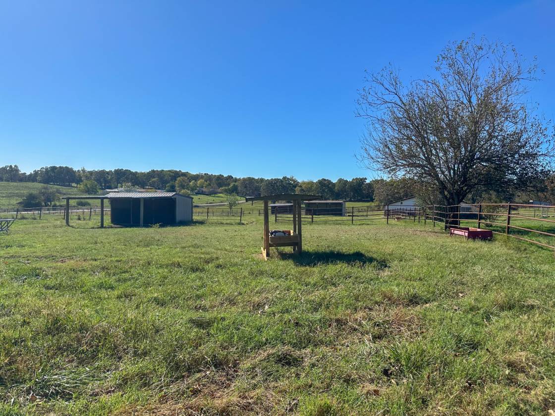 The land features gently rolling open pasture with scattered trees, cross-fencing, and three ponds (two stocked)-perfect for livestock, horses, or hay production. With ¼ mile of Highway W frontage, pipe fencing, basket-weave and barbed wire fencing, and multiple water sources including hydrants throughout, this farm is fully set up for cattle and equine operations. Four front paddocks with shelters, two hayfields, and excellent water access make this a true working ranch.