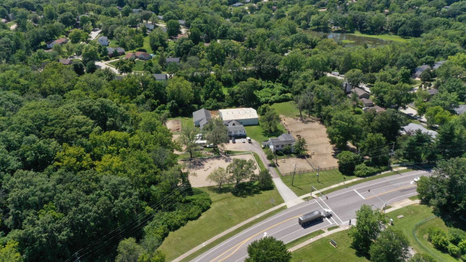 A successful boarding training business has existed on this property since 1971. Conditional use permit allowing for horse boarding/training will transfer to new owner. One of a kind find 5.6+ acres in a gorgeous suburban setting of Chesterfield. Mature trees surround the flat land on public sewer and water. Dry creek on back end of property. Horse barn include the old barn with rough cut vintage oak walls 11 stalls, feed room/tack room, hay loft that holds 800-900 bales of hay. Morton barn has 9 large wood lined stalls w/bars between horses, 10 ft wide aggregate aisleway, tack room and wash bay. This barn with is attached to the 90’x60’ indoor arena w/new LED lighting, kickboards, on a crushed limestone base w/sand footing and connect to viewing room w/fridge for parents to watch safely as their children ride. Enter in the main lobby gathering area and step back in time with the stone fireplace, wood bench cubbies surrounding the farm table and lounge, bathroom, wetbar, fridge and laundry area. Upstairs from barn is an economy apartment in use by the caretaker and his family 2 bed 1 bath, kitchen, living room. The old Baxter house can be brought back to life or torn down. 2 outdoor arenas include the jumping ring at 100’x180’ fenced & lighted. Dressage ring is 96’x48’ with shade & fenced. 7 paddocks, trailer parking, maintenance shed, chicken coop and a great way of living. Currently zoned NU. Many possible uses and has been a dog kennel in the past. Rezoning would allow for higher density building, an assisted living center, an accessory to the school etc.