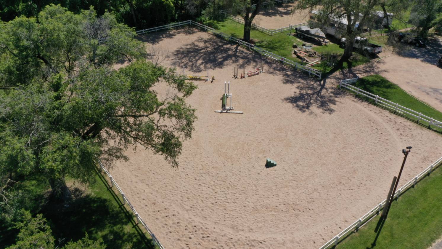 - Front arena 100’x180’ with crushed lime base is fenced & has LED lights