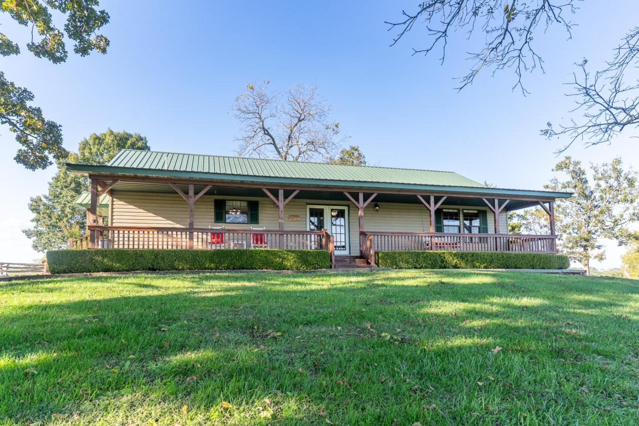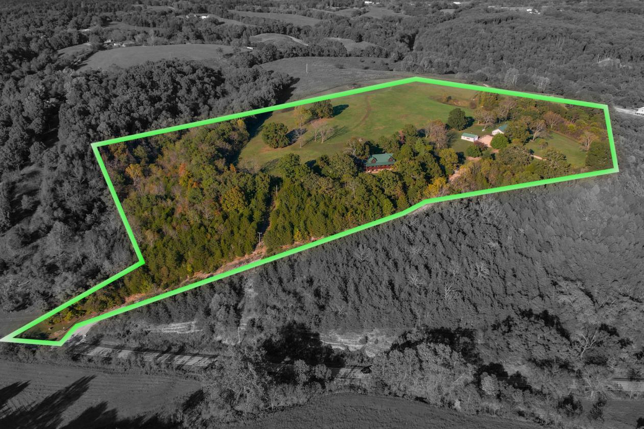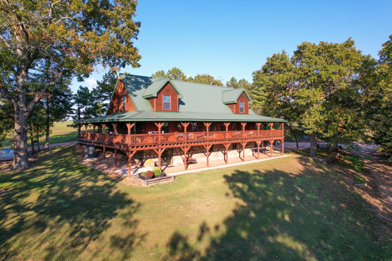 Multi-use Acreage Estate Property featuring a stunning Log Home and Guest Home Retreat in a Gated Multi-Family Furnished Estate on Private 28.1 Acres Welcome to The Last Resort, a private & secluded Ozark Mountain paradise. Located just 2 miles north of Galena off paved state highway 265 in Stone County Missouri. In very close proximity to Table Rock Lake, the Branson area, and a short 45 min drive into Springfield. This 28.1-acre multi-home property features an expansive 12-acre open pasture area maintained by the current owners like a manicured lawn. The setting is perfect for a horse property in the making! The large pasture area provides a Buyer with numerous use possibilities to operate a hobby farm, mini-horse ranch, and even build a gardening paradise a top the mountain! It’s such a unique property like no other, that its use potential is completely open to a Buyer’s imagination. One of the key attributes of this pasture area is a natural pond that holds water year-round to provide a consistent source to support livestock and wildlife. Whether you’re a horse enthusiast, wish to maintain any type of livestock, or just want to enjoy the wildlife, they don’t have to travel very far to get a drink. For that equine lover, the pasture also provides plenty of level acreage to potentially construct a horse stable or barn, and even a small riding arena (if so desired) making this a perfect horse property for that Buyer with a vision. Central to the property is a beautiful Log Home with a lodge-like presence consisting of a split loft design with a total of 4 bedrooms, 4 baths, a spacious living area, kitchen, and wrap around porch and oversized two-vehicle garage. If that isn’t enough for the visiting family and friends, there is a Bunkhouse consisting of another 2 bedrooms, 2 baths, a full kitchen, detached garage, and an exterior fish cleaning station. Situated just 300 feet to the east of the main home, makes it a perfect fit as a guest home, an extended family home, ranch hand living quarters, or even a nightly rental retreat. The rare layout of this property certainly opens up all kinds of additional potential as an income generating getaway property. Both homes enjoy stunning picturesque views including both sunrise and sunsets from the top of the mountain! Surrounding this private open mountaintop gem is a healthy timber mix of mature oaks and black walnut trees that provide for its serene privacy and seclusion. Other natural features include several areas of well-managed wild blackberry thickets which generate an abundance of summertime harvest for that avid gardener. Additional privacy features include two points of gated ingress & egress with the back entry road providing for trailered accessibility. Overall, this unique property with its Log Home and Bunkhouse in its Ozark Mountain setting is so extraordinary, its potential is whatever a Buyer envisions. There is no doubt that once you see if for yourself, you will want to make this home your Last Resort! Because this is a gated estate home property, showings will be by appointment only and provided only to well-qualified buyers with proof of funds. Contact listing agent for more photos and information.