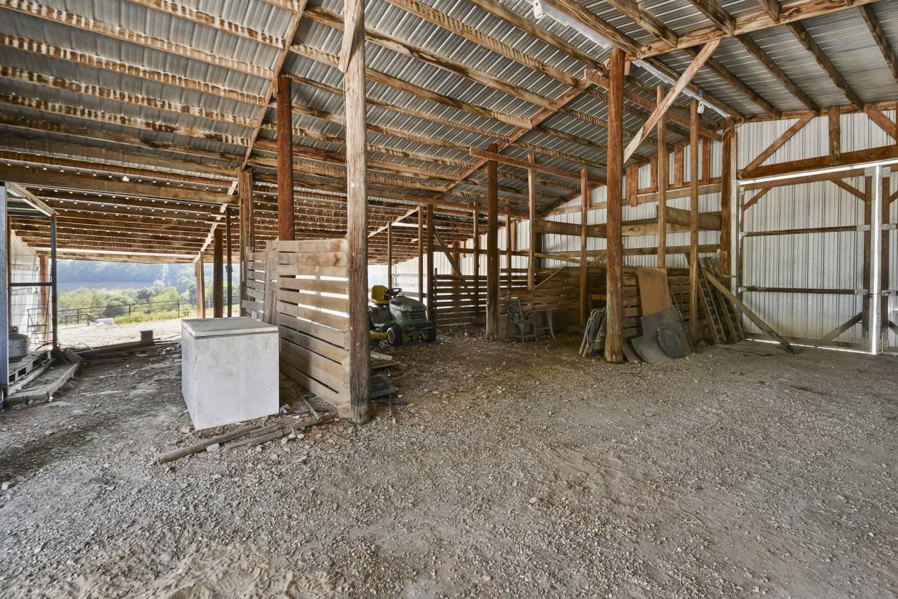 - Massive 40x90 outbuilding with concrete flooring, horse stalls, and 220 AMP electric