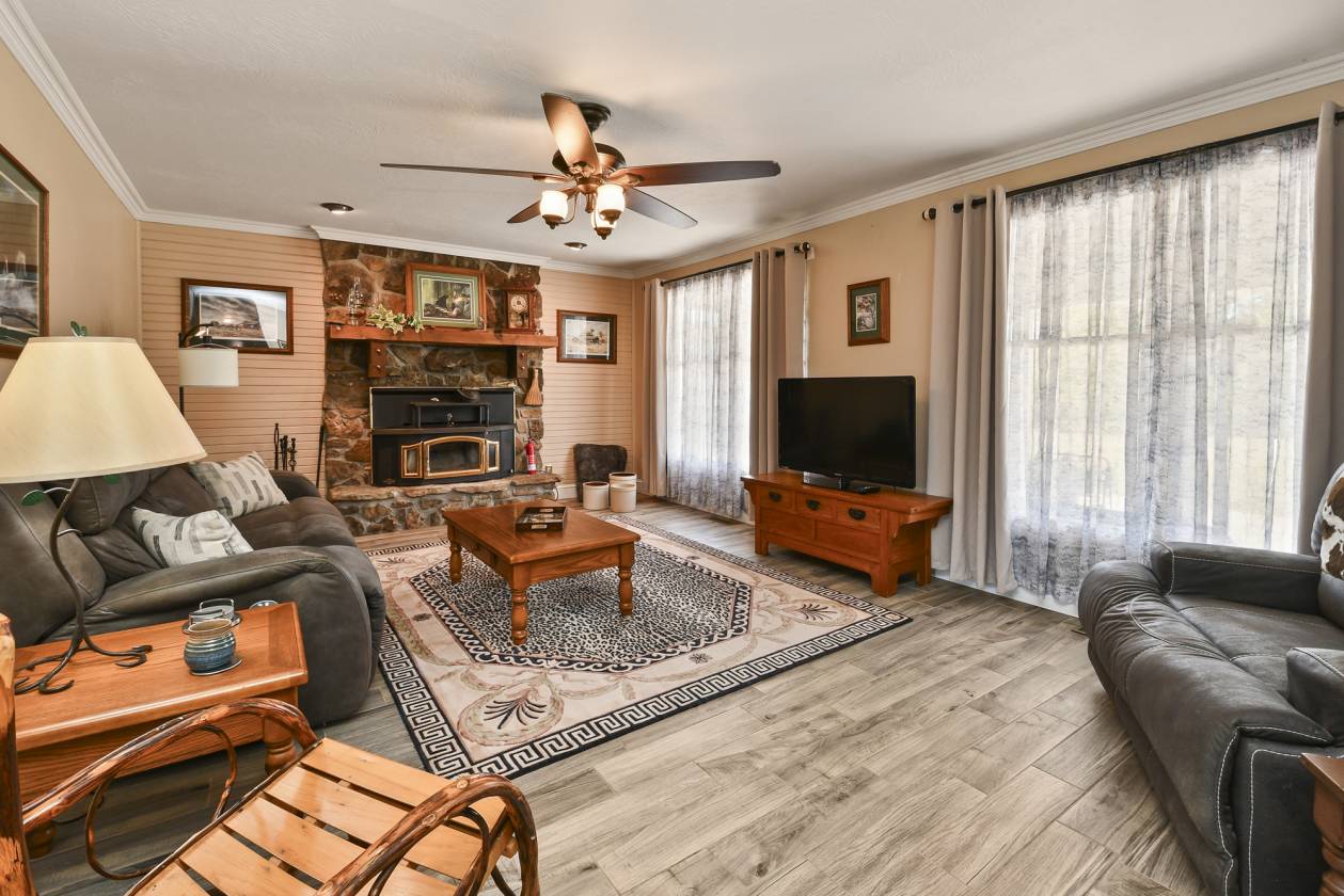 Discover country charm and modern comfort in this beautifully maintained 3-story, 4-bedroom, 2.5-bath home on 2.86 acres, located just 35 minutes southeast of Springfield, Missouri. With over 4,000 sq. ft. of living space, this property blends style and functionality in a peaceful rural setting. Home Features: Inviting front porch and spacious layout Updated kitchen with stainless steel appliances Cozy wood-burning fireplace Finished basement for additional living space Private primary suite with walk-in closet, dual sinks, jetted tub, and walk-in shower Property Features: Massive 40x90 outbuilding with concrete floors, 220 AMP electric, and existing horse stalls (easily adaptable for livestock, workshop, or storage) One-acre fenced for animals, plus space for expansion Garden area with apple, pear, and peach trees This versatile property offers plenty of options — whether you’re interested in horses, hobby farming, or simply enjoying the serenity of country living. With recent updates and room to grow, it’s a rare opportunity just outside Springfield.