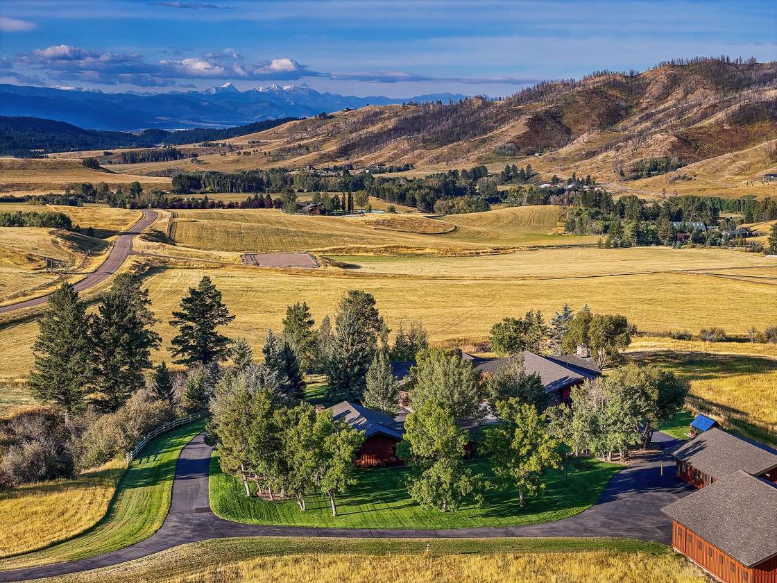 Tepee Ridge Homestead is a tranquil mountain retreat in the coveted Bridger Canyon, ideally located midway between Bozeman and Bridger Bowl Ski Area, just a 10-minute drive away. The easily accessible 97± deeded acres encompass lush mountain meadows with breathtaking views of the Bridger and Spanish Peak mountain ranges. The expansive homesite with outbuildings is landscaped and includes a dog run. The meadows are harvested annually and provide a small income for the property or a perfect hay base for anyone wanting to enjoy livestock. The diverse habitat supports a rich variety of wildlife, most notably the elk, frequently traveling across the property. The property is safeguarded from substantial development by county regulations within the Bridger Canyon Zoning District. This increasingly valuable protection helps preserve the high quality of life within the Bridger Canyon community. The 5,386± square foot Western contemporary main home offers three bedrooms and three bathrooms, thoughtfully designed to live almost entirely on one level. Multiple living and dining areas provide ample room for entertaining or simply unwinding. High-end finishes make it clear the attention to detail paid to designing this space. Just around the drive from the main home, you’ll find a charming 1,441± square foot, two-bedroom, two-bathroom guest house, a greenhouse, an expansive shop, and a toy barn, making this property ideal for relaxation and recreation. Less than a 10± minute drive from the property, you could be strolling along Main Street in historic downtown Bozeman, skiing at Bridger Bowl Ski Area, or hiking/biking on many public land trails nearby.