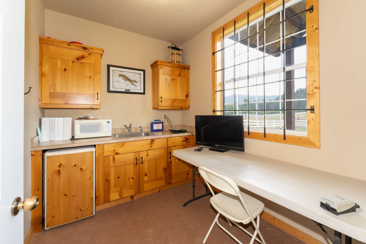 • The on-site well provides water to the barn and to a future home with a ground water certificate for 23 GPM dated back to 2004 that is currently in a suspended status. The property’s agricultural potential is enhanced by its equestrian appeal, with a large, beautifully maintained barn featuring four stalls, complemented by horse corrals and elegant white fencing that contribute to the estate’s charm, while miles and miles of trails on Tribal lands (permit required) beckon from across the hwy. The barn includes a restroom, an office, a tack room, a tool/chemicals room, and more. There's a multitude of wildlife sharing the property with many deer enjoying the shade of the trees. Recreational opportunities abound, with Flathea
