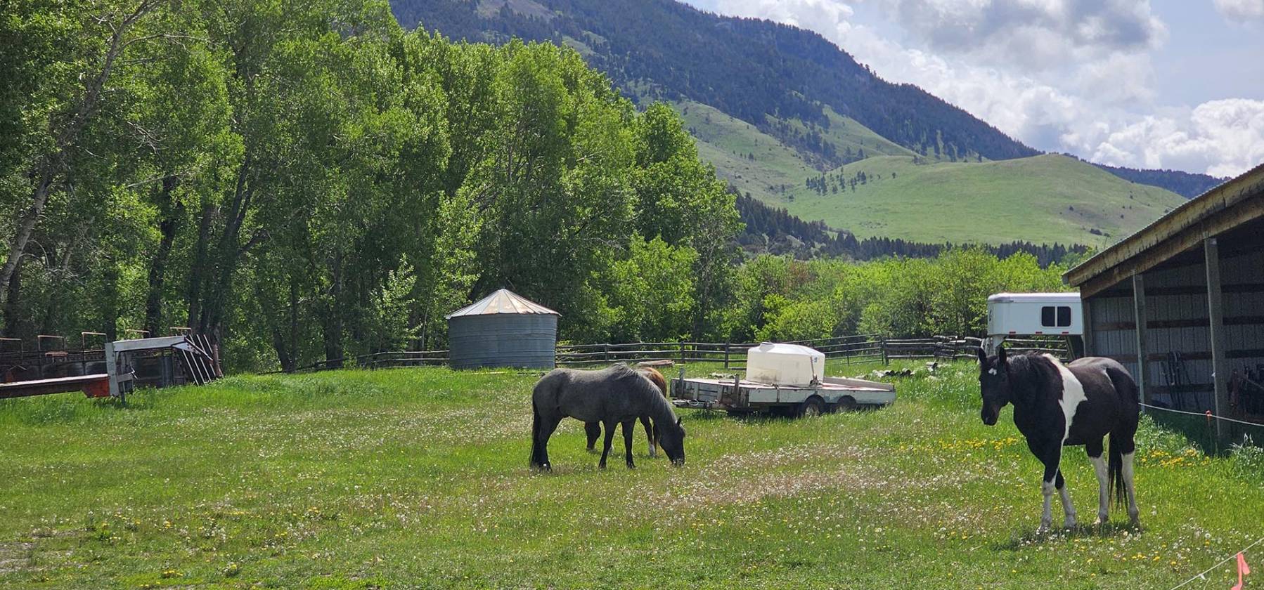 The ranch is graced with over 2 miles of Tolman Creek and half a mile of Mill Creek, providing excellent water resources for stock and wildlife. The land is well-suited for productive agricultural use with approximately 100± acres under pivot and 50± acres under flood irrigation. It supports a viable cattle operation with capacity for 80 pairs, bolstered by two additional summer grazing leases.