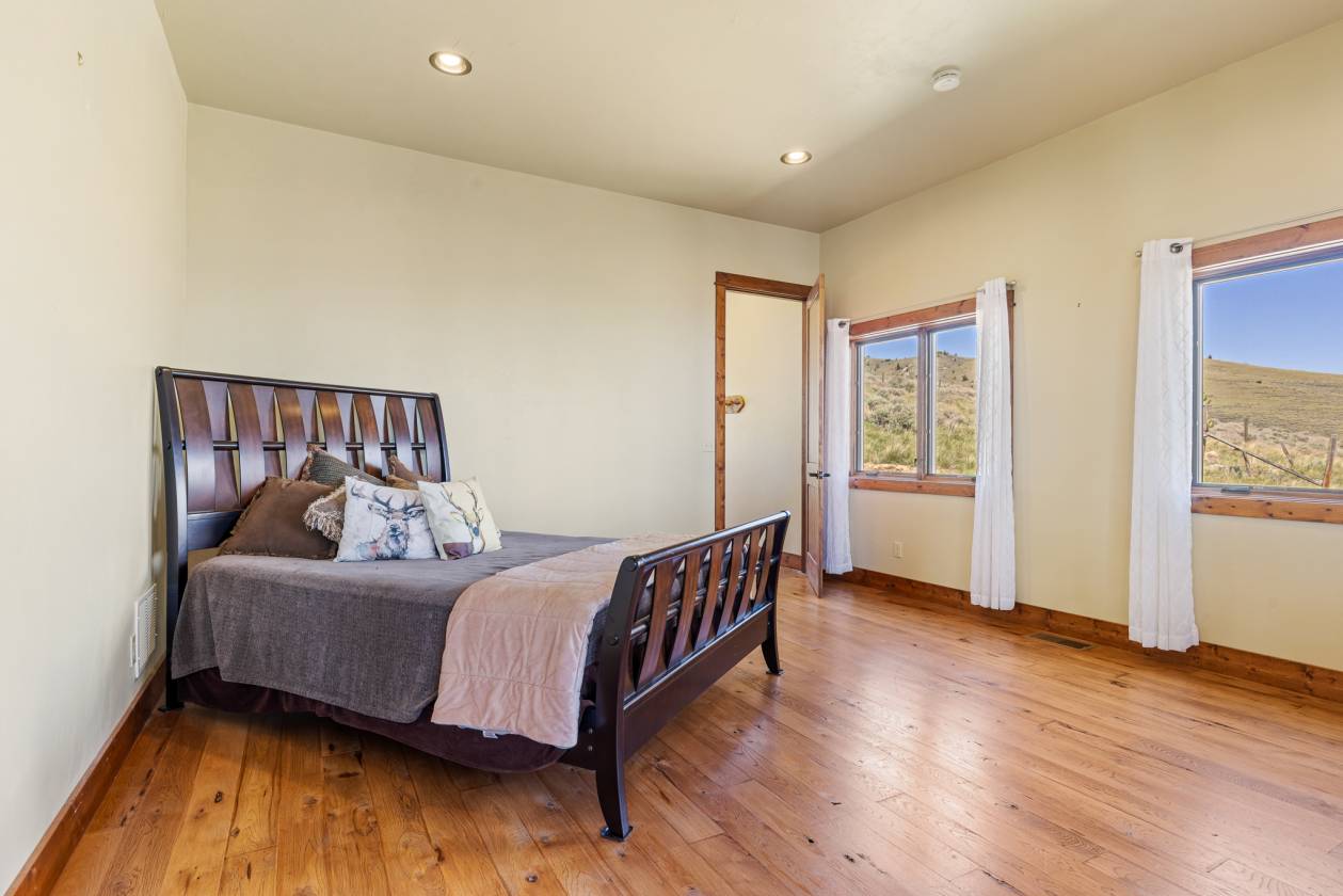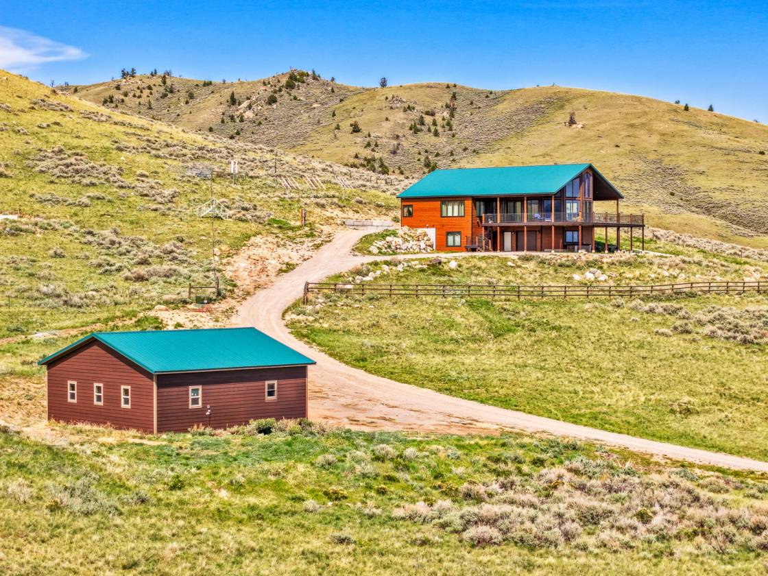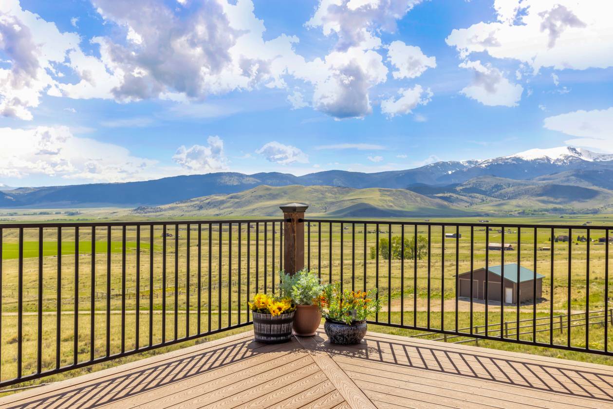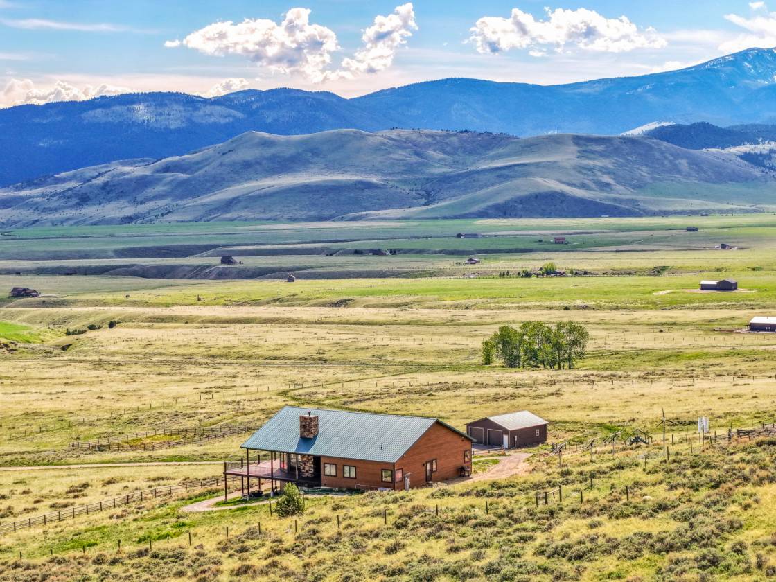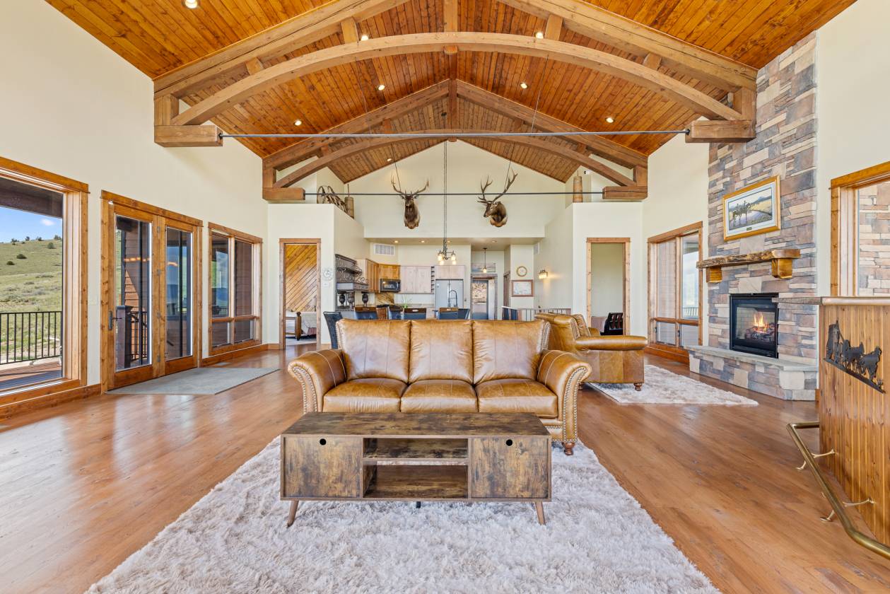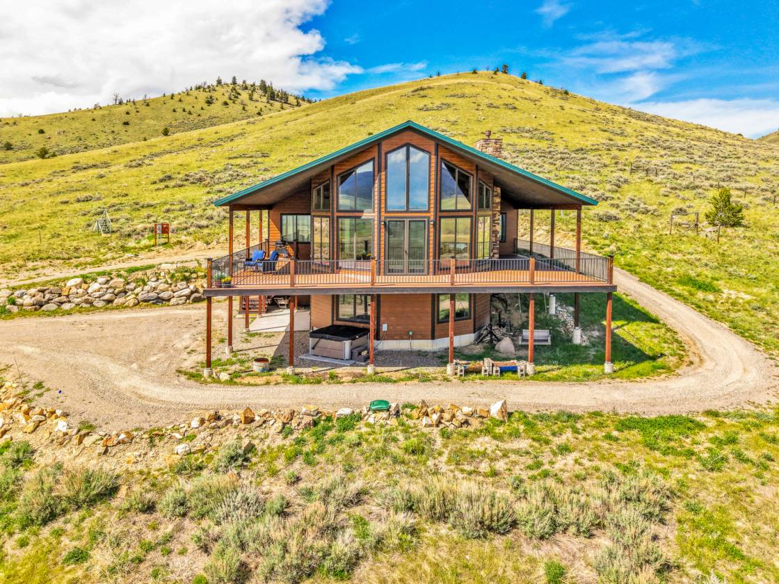 Situated on over 33 private acres above Ennis Lake, this architecturally distinct retreat offers panoramic views of the Madison, Tobacco Root, Gravelly, and Centennial mountain ranges—with visibility of the Grand Tetons on clear days. Now fully connected to power and utilities, the property delivers modern convenience without compromising its serene, off-grid feel. Designed to frame the landscape rather than compete with it, the home spans approximately 4,500 square feet. Vaulted ceilings and custom Big Timber trusses define the main living space, with hidden steel rods inside each beam to preserve uninterrupted sightlines in every direction. Hickory wood flooring and cabinetry bring natural warmth throughout, while radiant in-floor heating and a propane fireplace provide year-round comfort. The chef’s kitchen features granite countertops, premium appliances, and generous prep space—ideal for entertaining or everyday living. A custom Texas Mesquite mantle, milled from a 109-year-old tree, adds character to the Great Room. Expansive wraparound deck and patio extend the living space outdoors, and a brand-new hot tub offers a stunning perch for sunrise soaks or stargazing under Montana’s big sky. Additional amenities include a finished basement, an oversized attached one-car garage, and a detached two-car garage with extra storage. Zoning allows for up to three horses, making the property well-suited for equestrian use or quiet country living. Located just 20 minutes from Ennis, one hour from Bozeman-Yellowstone International Airport, and under two hours to Yellowstone National Park, this is a rare opportunity to own a legacy property that celebrates both craftsmanship and the raw beauty of Montana.