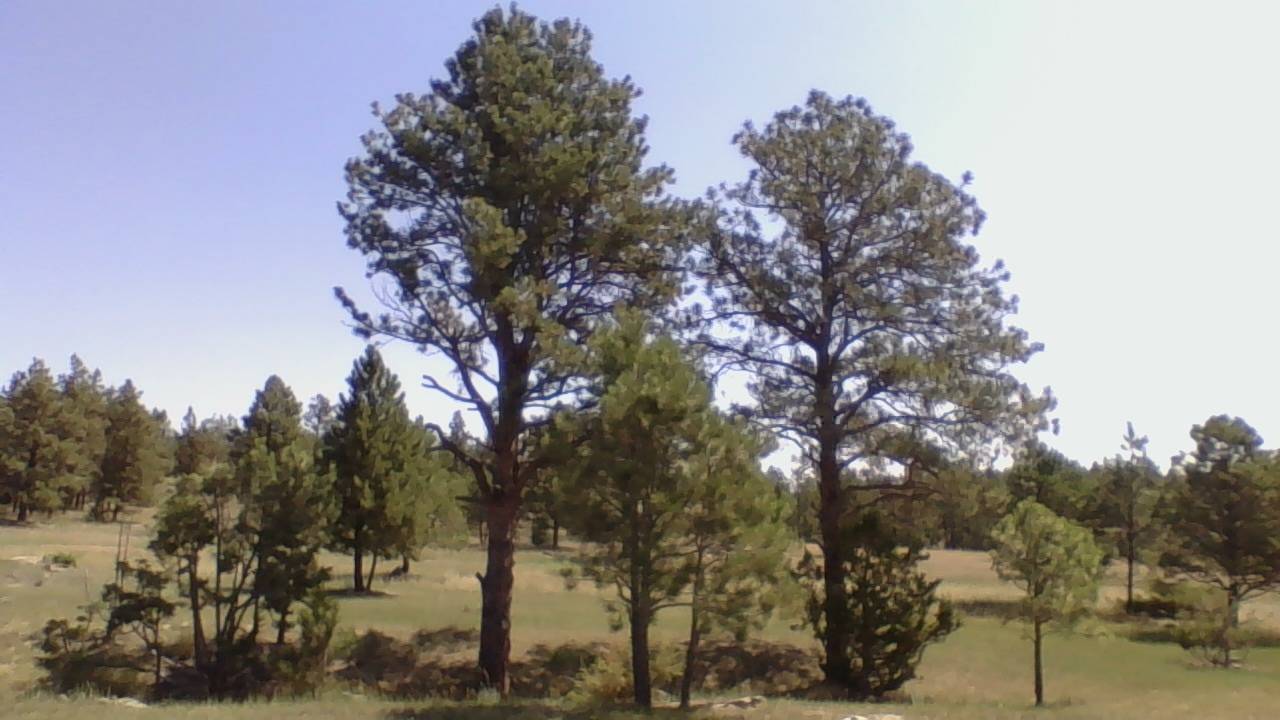 - Wonderful Grazing with some pines all around perimeter, many sprinkled throughout. The Northeast 2 acre corner w/ 12' picnic table, is Rugged and Scenic with 19 mile Views on flat top hills. 18 acres are very Traversable. All is green and thriving.