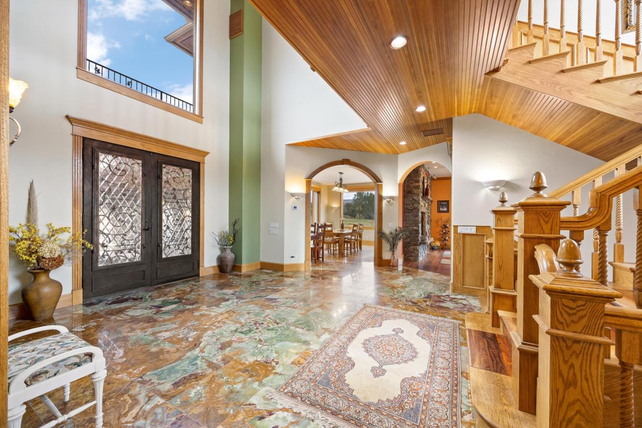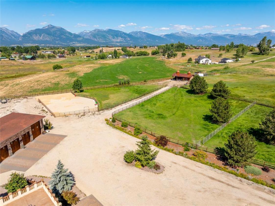 Welcome to 859 Hamilton Heights Road, an extraordinary Bitterroot Valley estate where luxury, land, and lifestyle converge. Encompassing 33 acres of productive Montana ground, this property is anchored by a stately residence exceeding 9,000 square feet, seven bedrooms and eight bathrooms, thoughtfully designed to accommodate both intimate family living and large-scale gatherings with ease. The home’s interior blends timeless Montana elegance with resort-level comfort. Multiple living areas, formal and informal entertaining spaces, and private bedroom suites allow owners and guests alike to enjoy both connection and privacy. A custom, high-end kitchen outfitted with top-of-the-line appliances serves as the heart of the home, ideal for everyday living or catered events. Architectural details include rich wood accents, stonework, fireplaces throughout, spa-style amenities including a sauna, and expansive recreation spaces well suited for games, fitness, or relaxation. A 1,164-square-foot one bedroom, two bathroom guest house is thoughtfully positioned near the fruit tree orchard, offering close proximity to the main residence while maintaining a sense of privacy and comfort—perfect for extended family, guests, or on-site hosting needs. Outdoors, the estate unfolds into a postcard-worthy setting featuring lush irrigated pasture, mature landscaping, a scenic creek, private trout pond, fenced paddocks, barn wtih heated tack room & bathroom, large garage, and manicured event lawns, all framed by sweeping mountain views. These amenities support a wide range of uses, from equestrian pursuits and agricultural production to weddings, retreats, and seasonal lodging. The property has been successfully recognized and utilized as an event and hospitality destination, while still preserving the integrity, tranquility, and privacy expected of a true luxury estate. Situated just minutes outside Hamilton, Montana, residents enjoy convenient access to dining, healthcare, and local amenities, while remaining immersed in the natural beauty and recreational opportunities of the Bitterroot Valley—world-class fly fishing, hiking, wildlife viewing, and year-round outdoor adventure. This is more than a home—it is a legacy asset, offering exceptional lifestyle appeal, income potential, and long-term value in one of Montana’s most desirable valleys.